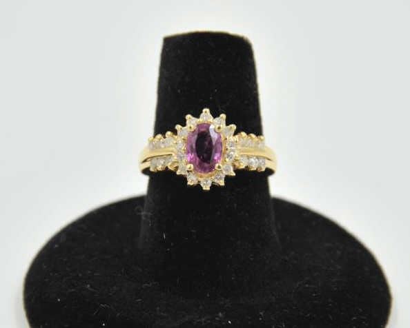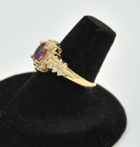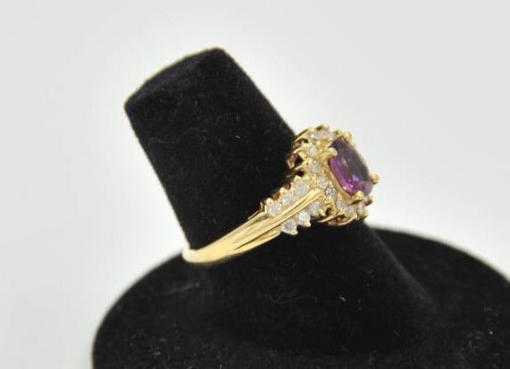 18PRS-13 SAPPHIRE RINGOne ladies ring in 14k yellow gold set with purple sapphire weighing approx 1.75ct and 26diamonds wt 0.60ct EST:$1000-1500One ladies ring in 14k yellow gold set with purple sapphire weighing approx 1.75ct and 26diamonds wt 0.60ct EST:$1000-1500