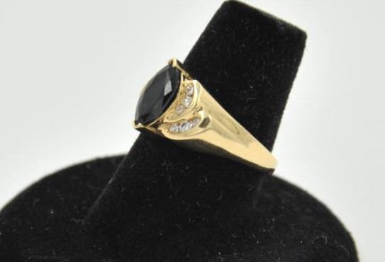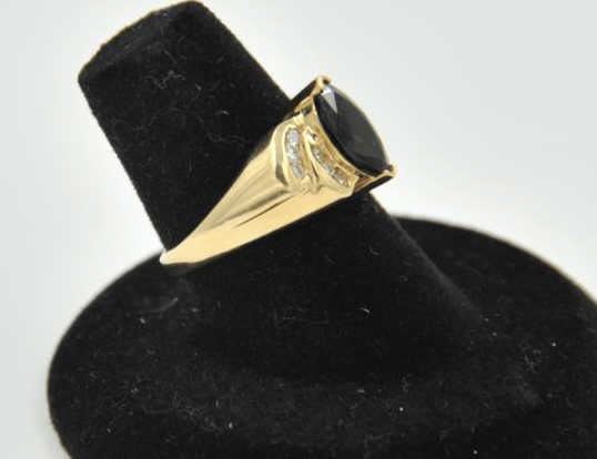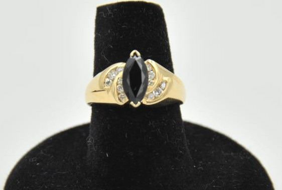 18RPS-19 SAPPHIRE & DIAMOND RINGOne ladies ring in 14k yellow gold set with a marquee sapphire approx 1.5ct and 12 side diamonds EST:$500-750One ladies ring in 14k yellow gold set with a marquee sapphire approx 1.5ct and 12 side diamonds EST:$500-750