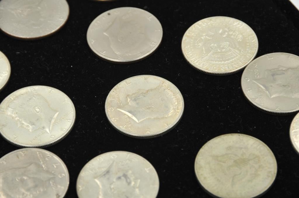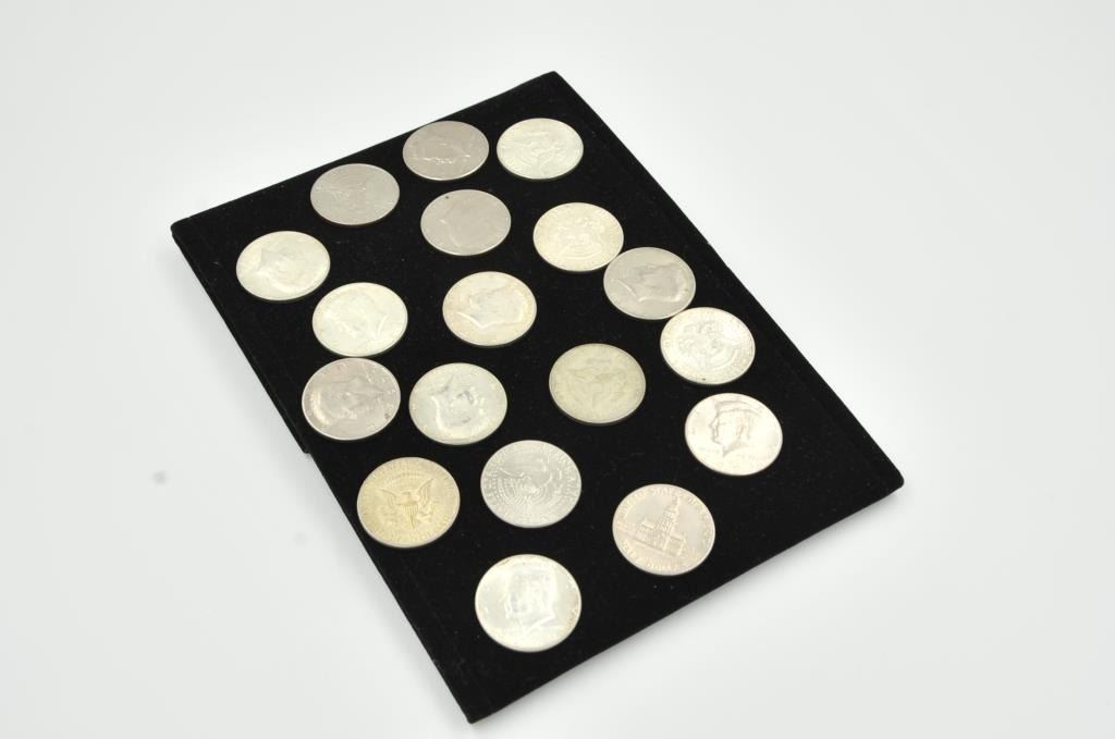 18RPS-9 COIN COLLECTIONA coin collection of 11 half dollar Kennedy 1964 & 7- 1990 and up ,2 bicentennial Eisenhower dollar & 3 1972( 23 coins in all has silver content) EST:$75-150A coin collection of 11 half dollar Kennedy 1964 & 7- 1990 and up ,2 bicentennial Eisenhower dollar & 3 1972( 23 coins in all has silver content) EST:$75-150
