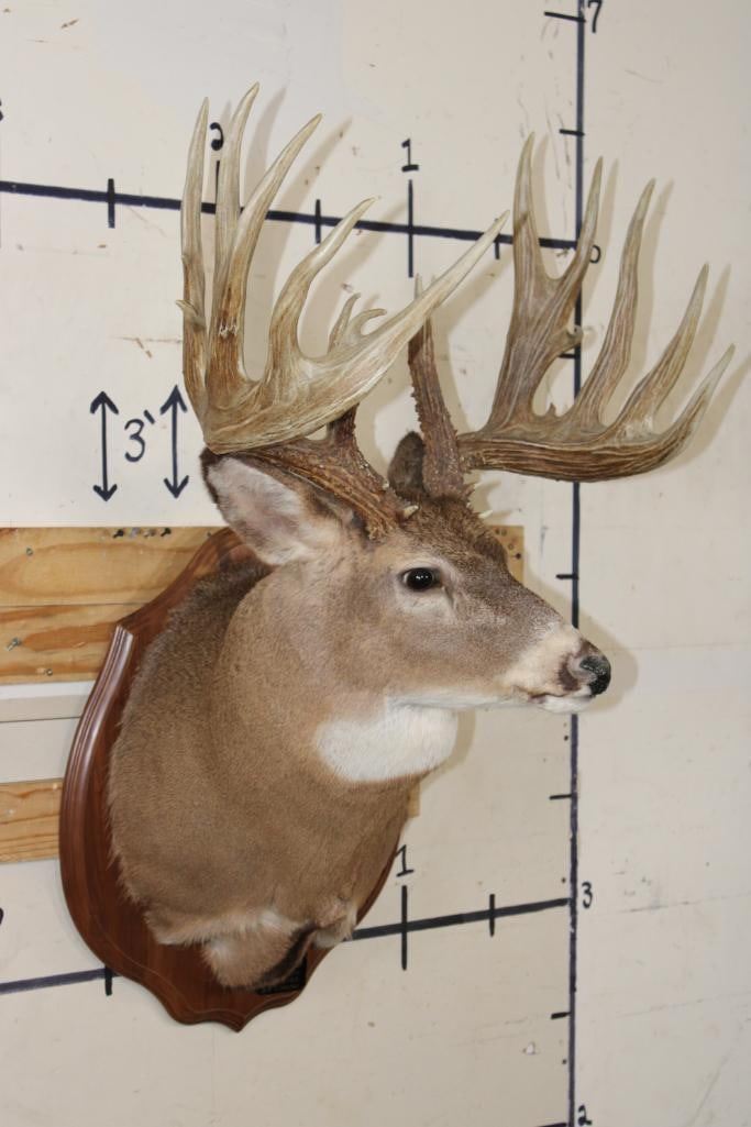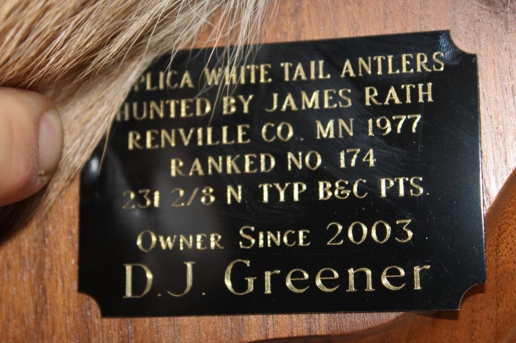 19-Point WHITETAIL DEER Shoulder Mount with Reproduction Antlers. This is mounted after James Rath's Boone and Crockett Scored 231 2/8 Non-Typical No. 174 Whitetail Deer that was hunted in Renville County Minnesota 1977. It is on a Wooden Plaque. TAXIDERMY