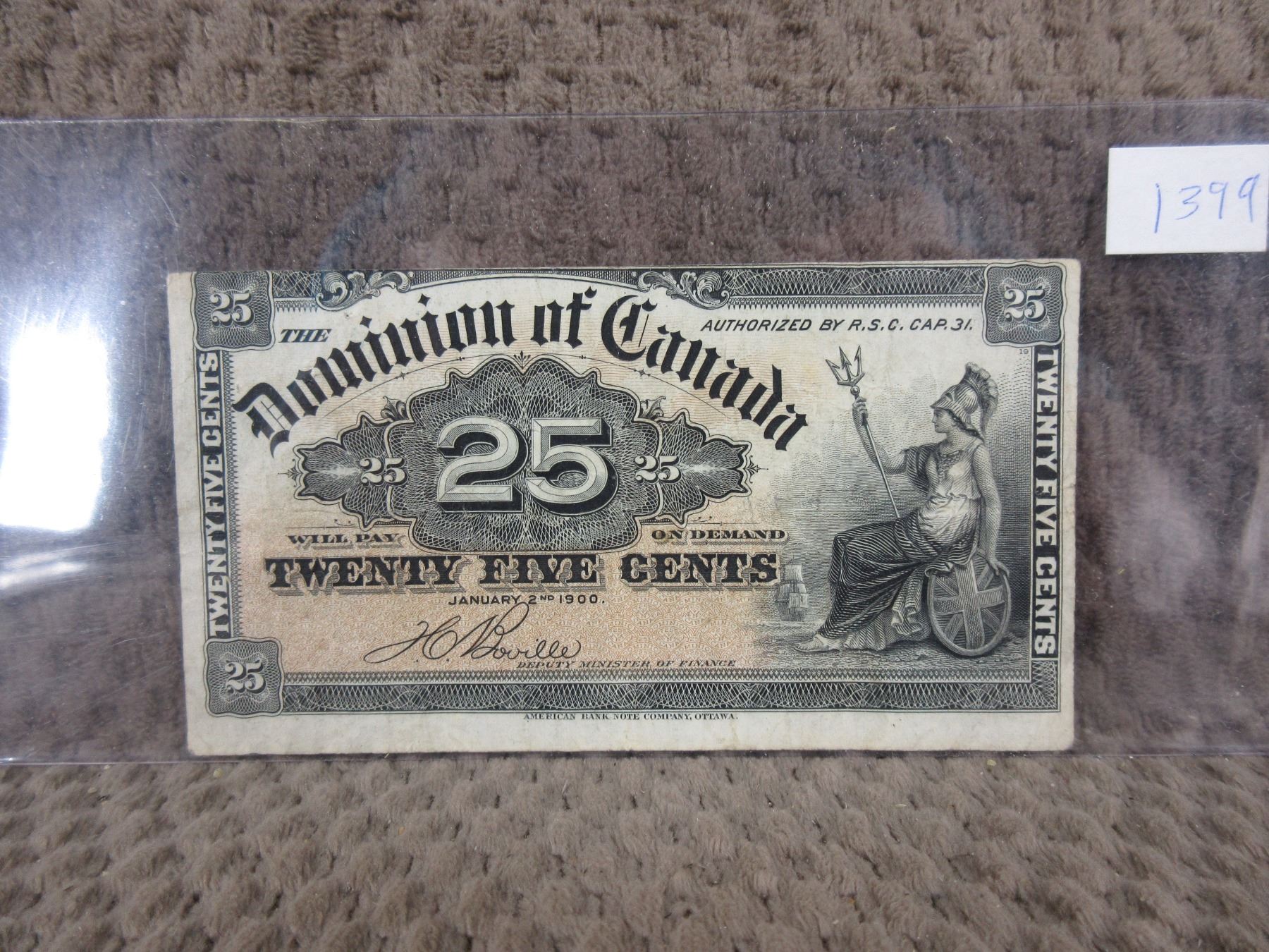 1900 - 25 Cent Canadian Bill - Miss Cut Shinplaster