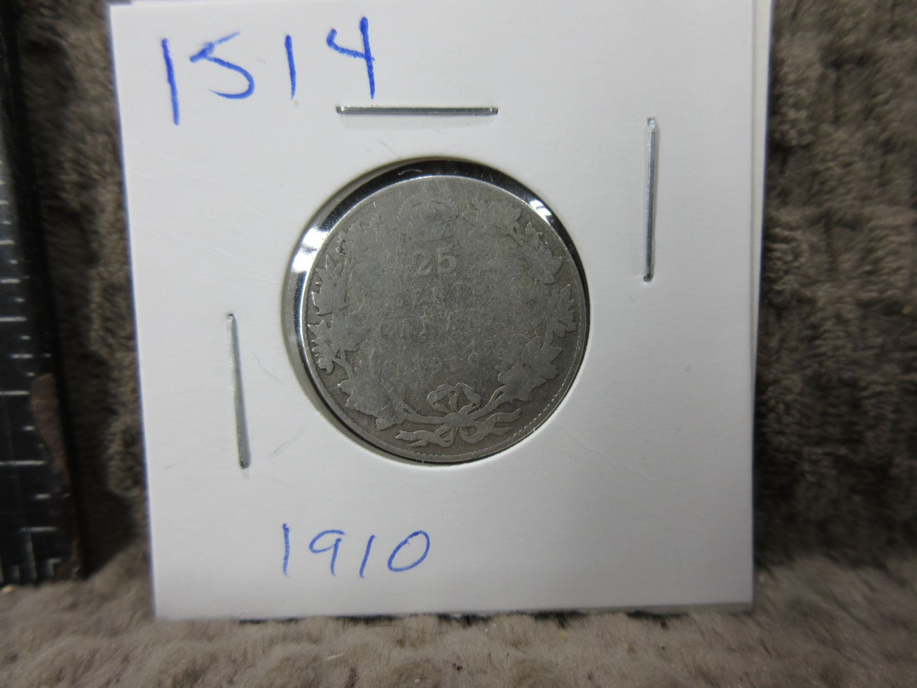 1910 - Canadian 25 Cent Piece - .800 Silver