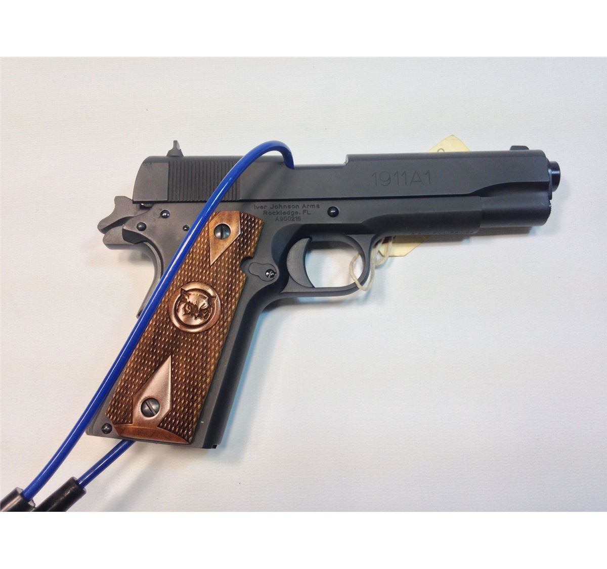 Iver Johnson 1911 9mm pistol with brown wood grips and x1 magazine