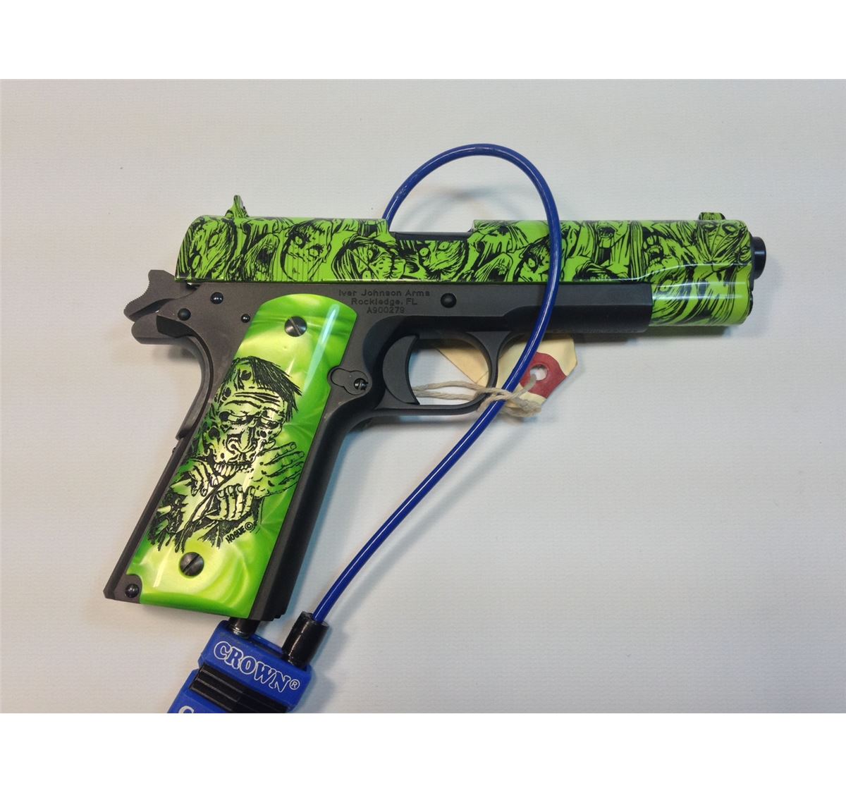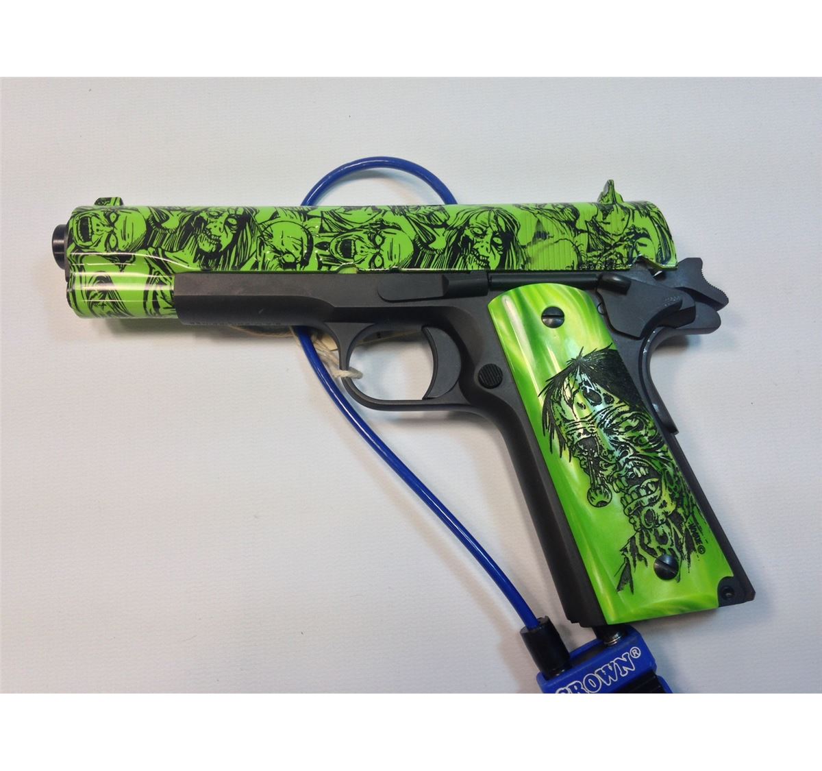 Iver Johnson 1911 9mm pistol a full neon green Zombie theme and x1 magazine