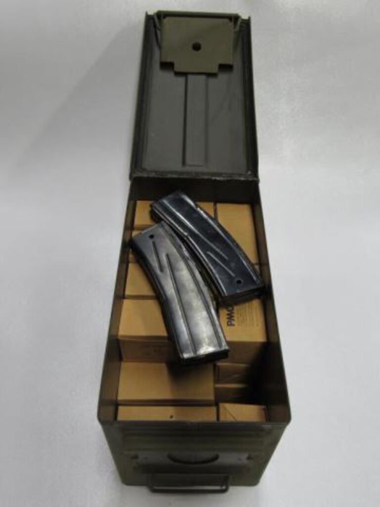 Ammo; 23 Full Boxes Plus 2 Clips- 1 Empty & 1 Partially Full Ammo Box 12x6x8"