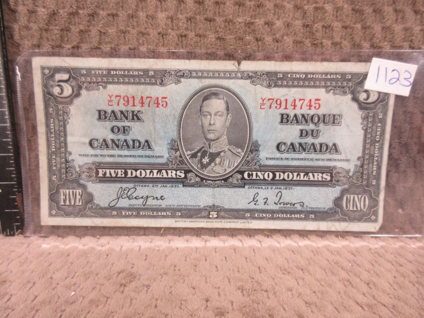 1937 Canadian 5 Dollar Bill