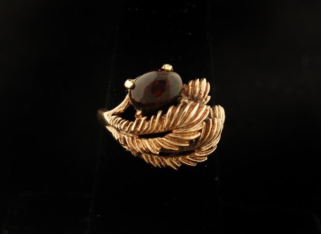 1940's-1950's Ladies 1.2 carat Black Opal (natural cab. cut) set in 14K gold, size 6.Fires up with light. Est:$500-1,000