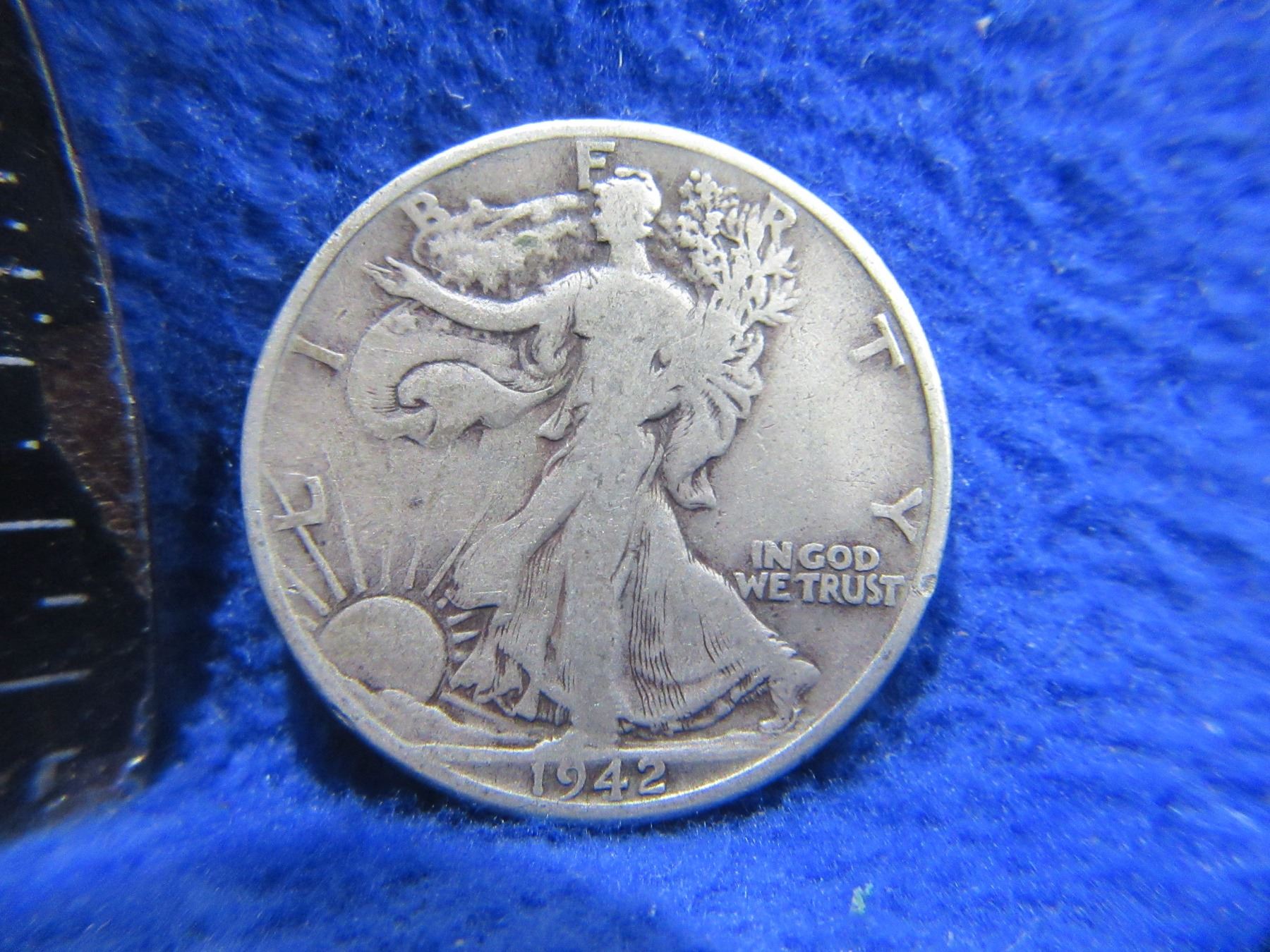 1942 USA "Walking Liberty Half Dollar" - .900 Silver, 12.2 Grams - Coin faces are worn