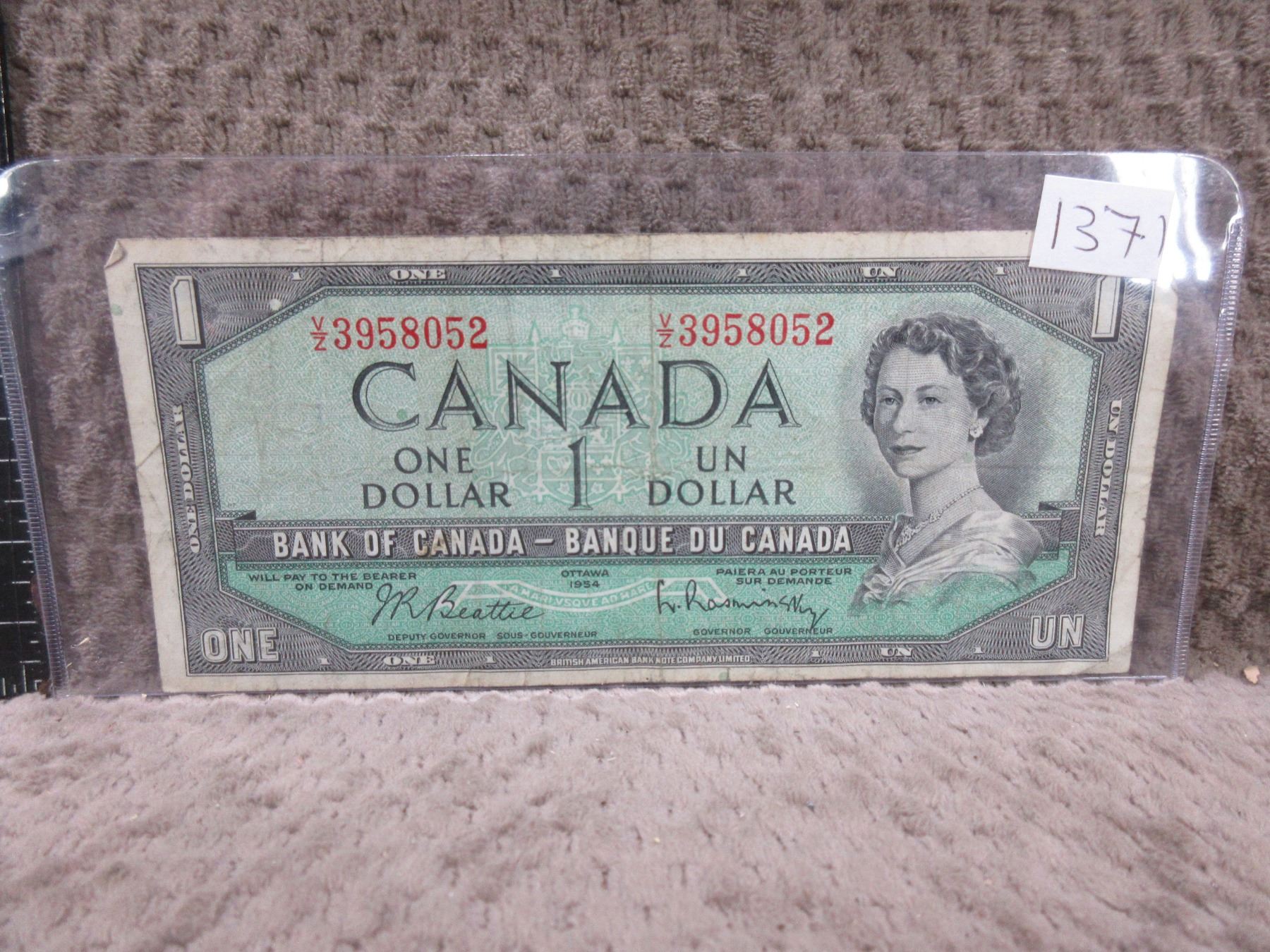 1954 Canadian 1 Dollar Bill