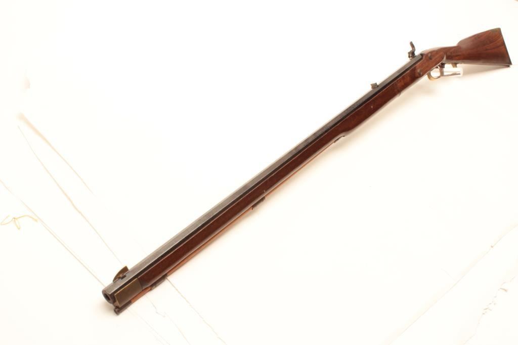 1970’2 era Ardesa Spain reproduction percussion rifle, .45 caliber, Serial #121305. The rifle is in very good overall condition with a 33 ½” octagon barrel with a brass knife blade front sight. The barrelretains the majority of its blue finish with sharp edges and light surface erosion evident. The smooth wood stock is in good condition with small mars and a couple of extra holes where tacks were removed. Thestock features all brass hardware and a crescent butt plate. Est.: $175-$350.