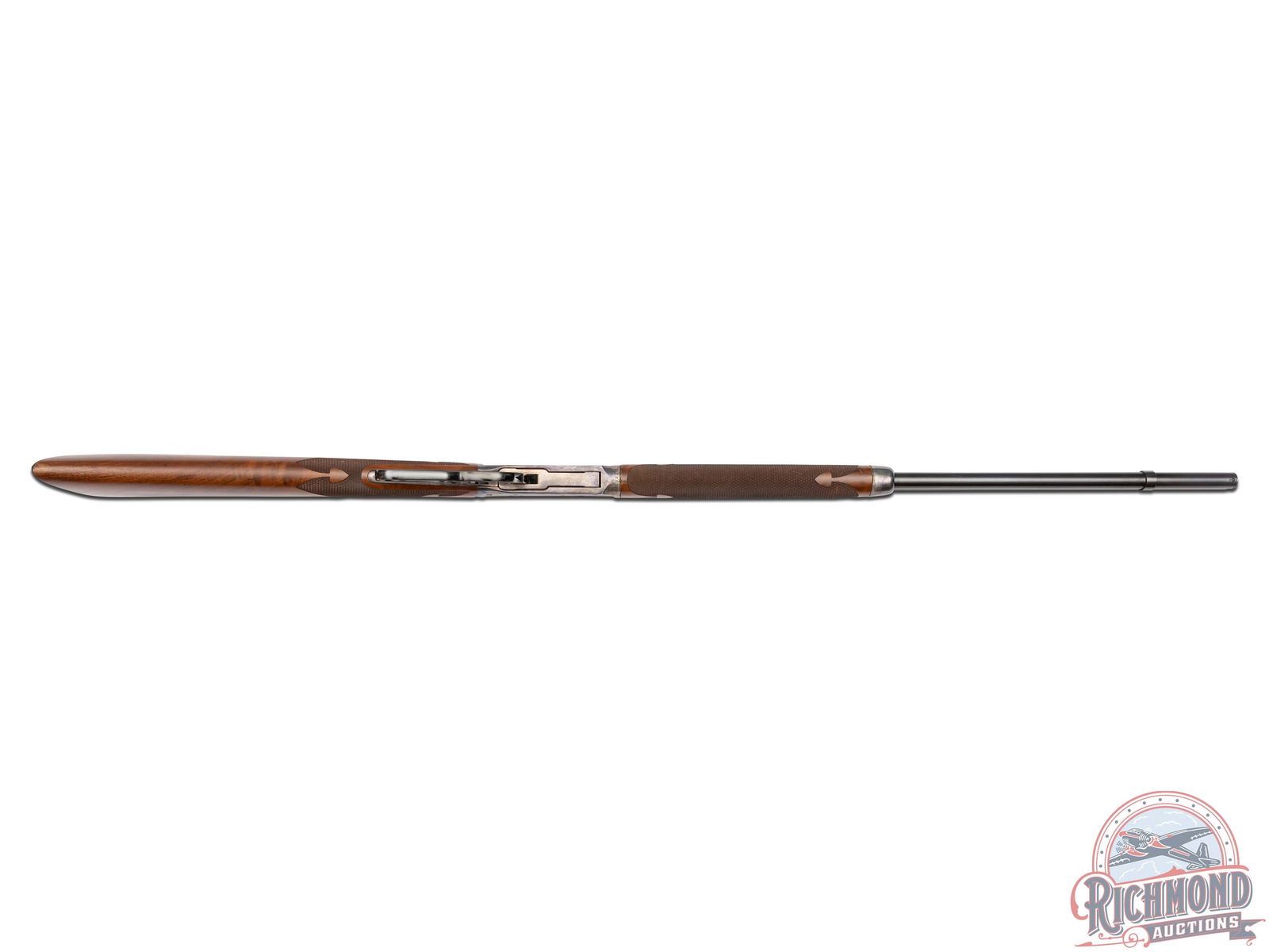 Retains 96%+ finish on barrel and tube. Action silver shows some tarnish from age and storage. Stock shows a few light dings, and light scuff in the forearm checkering. Great bore and mechanics.