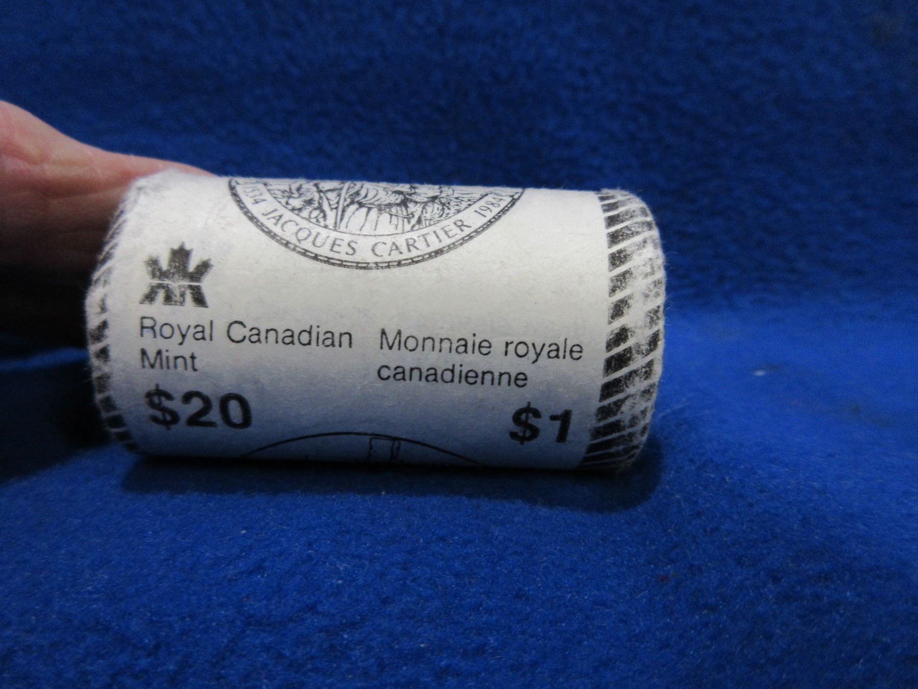 1984 Canadian $1 Coins - Intact Roll of 20 - Commemorative Issue - 450th Anniversary of Cartier's Landing at Gaspé Peninsula