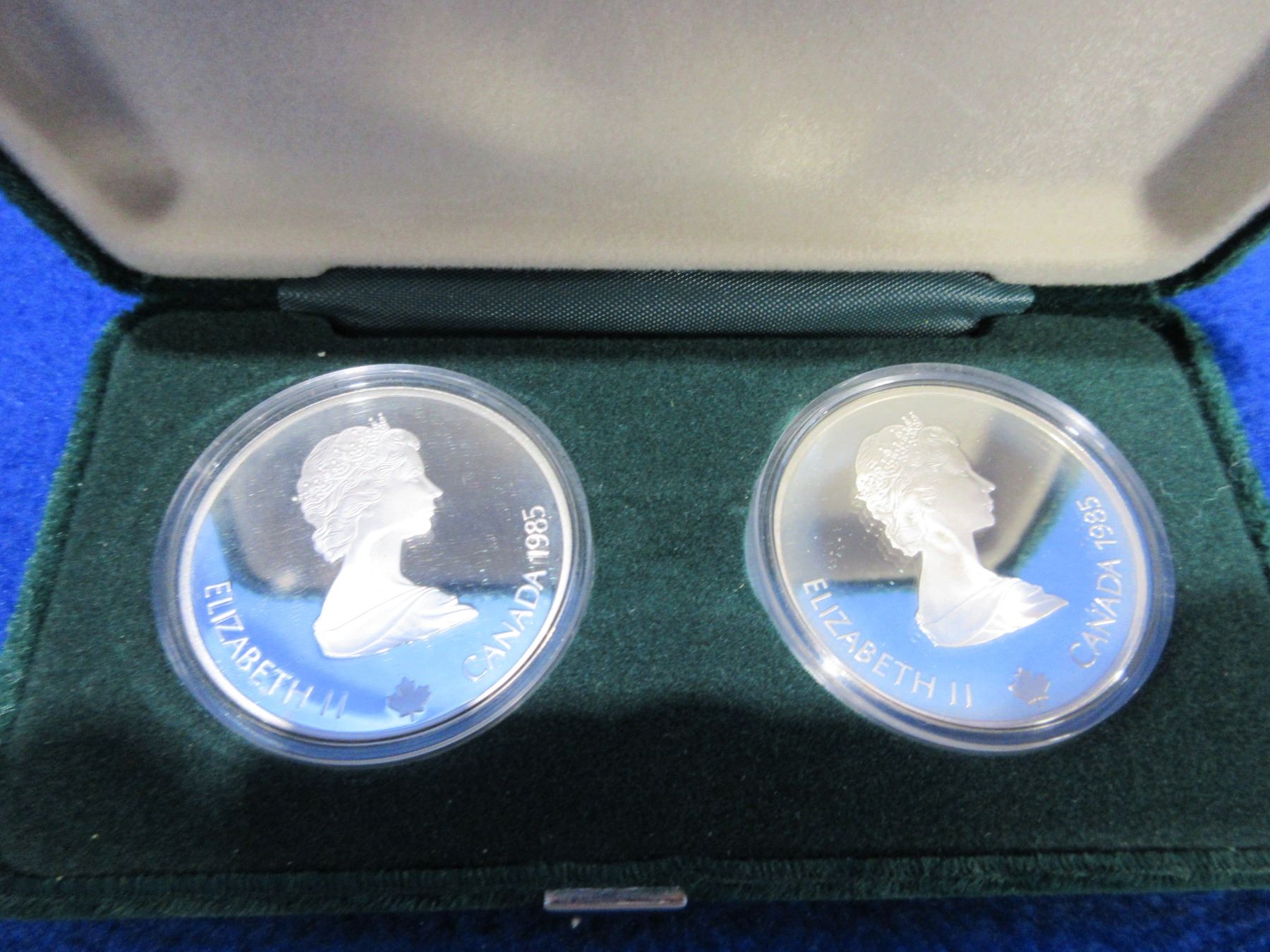 1985 Two $20 Coin Proof Set - .925 Silver - 1988 Calgary Olympics, Downhill Skiing + Speed Skating - In Original Box