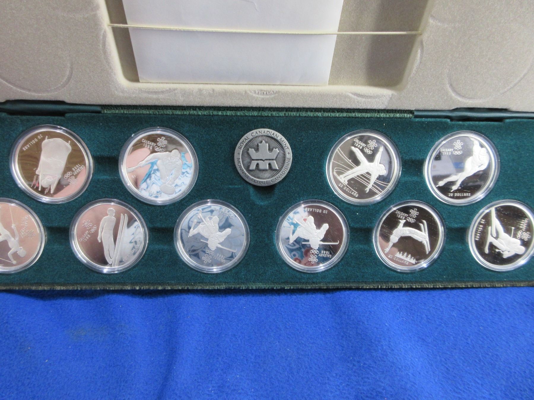 1988 Olympic Winter Games 20 Dollar 10 Coin Set - .925 Silver - Royal Canadian Mint - In display case with sleeve and Certificate of Authenticity