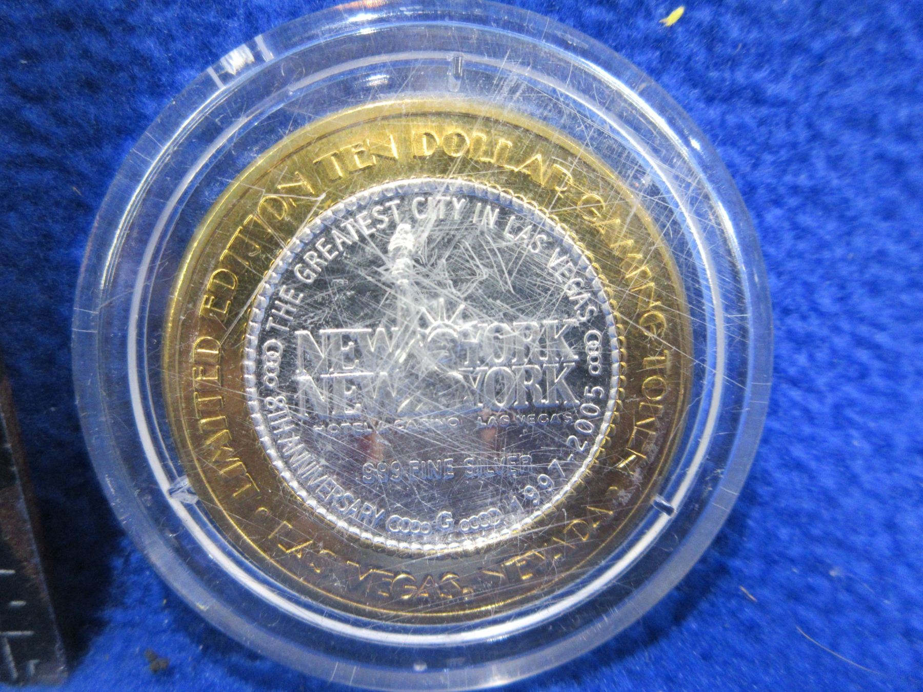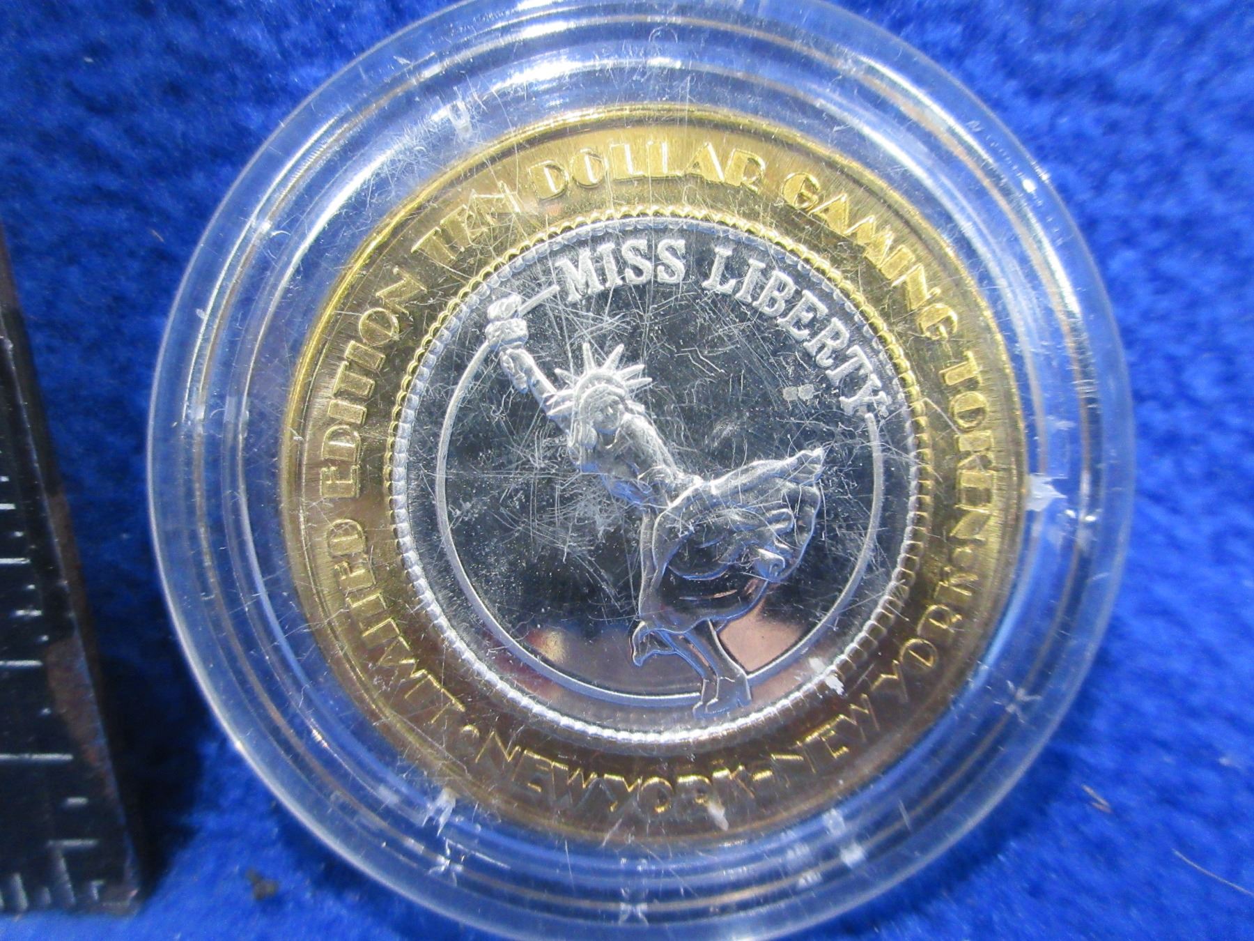 1997-2005 Las Vegas, Nevada Limited Edition Ten Dollar Gaming Token - New York, New York - Bimetallic: Silver (.999) Center in Copper Ring - Sealed in Plastic Case