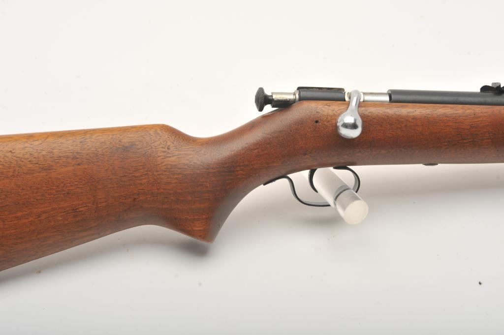 Winchester Model 67A single shot rifle, .22 short, long or LR caliber, 20” barrel, blued finish, wood stock, no visible S/N; overall very good to fine condition displaying majority of original finish, very good to fine bore, crisp action and markings, very good + wood stock. (C&R). Est.: $100-$200.