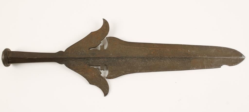 Vine motif, shows age and has a 1" break to blade. Measures 21" overall.