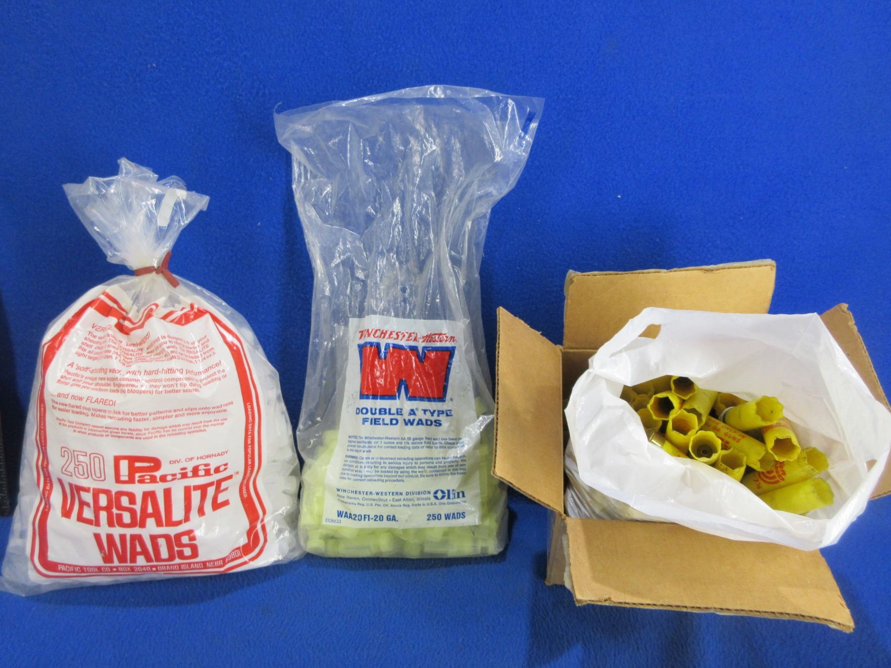 2 Bags of 20 Gauge Shotshell Wads and Box of 20 Ga. Hulls