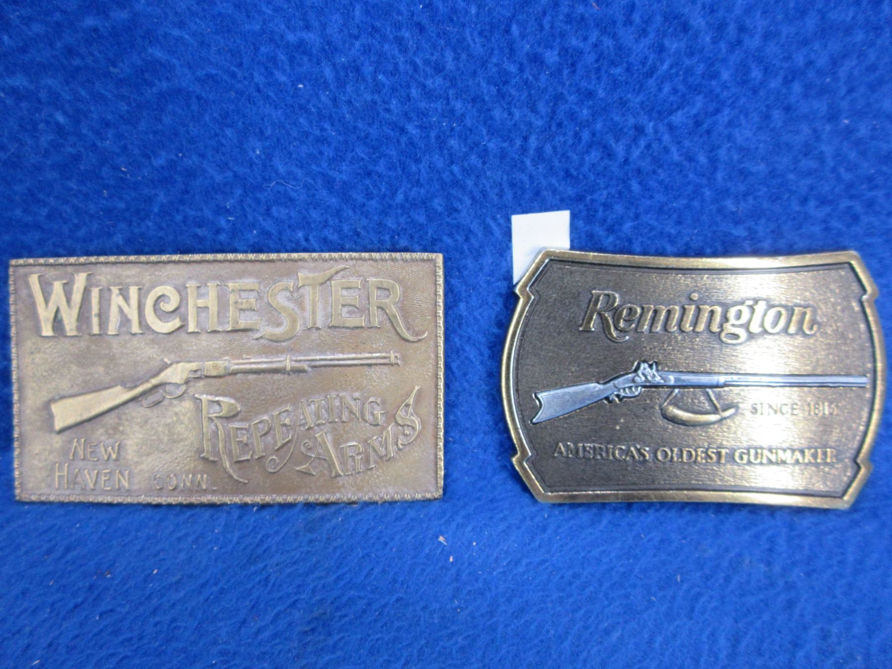 2 Belt Buckles - Remington and Winchester Repeating Arms