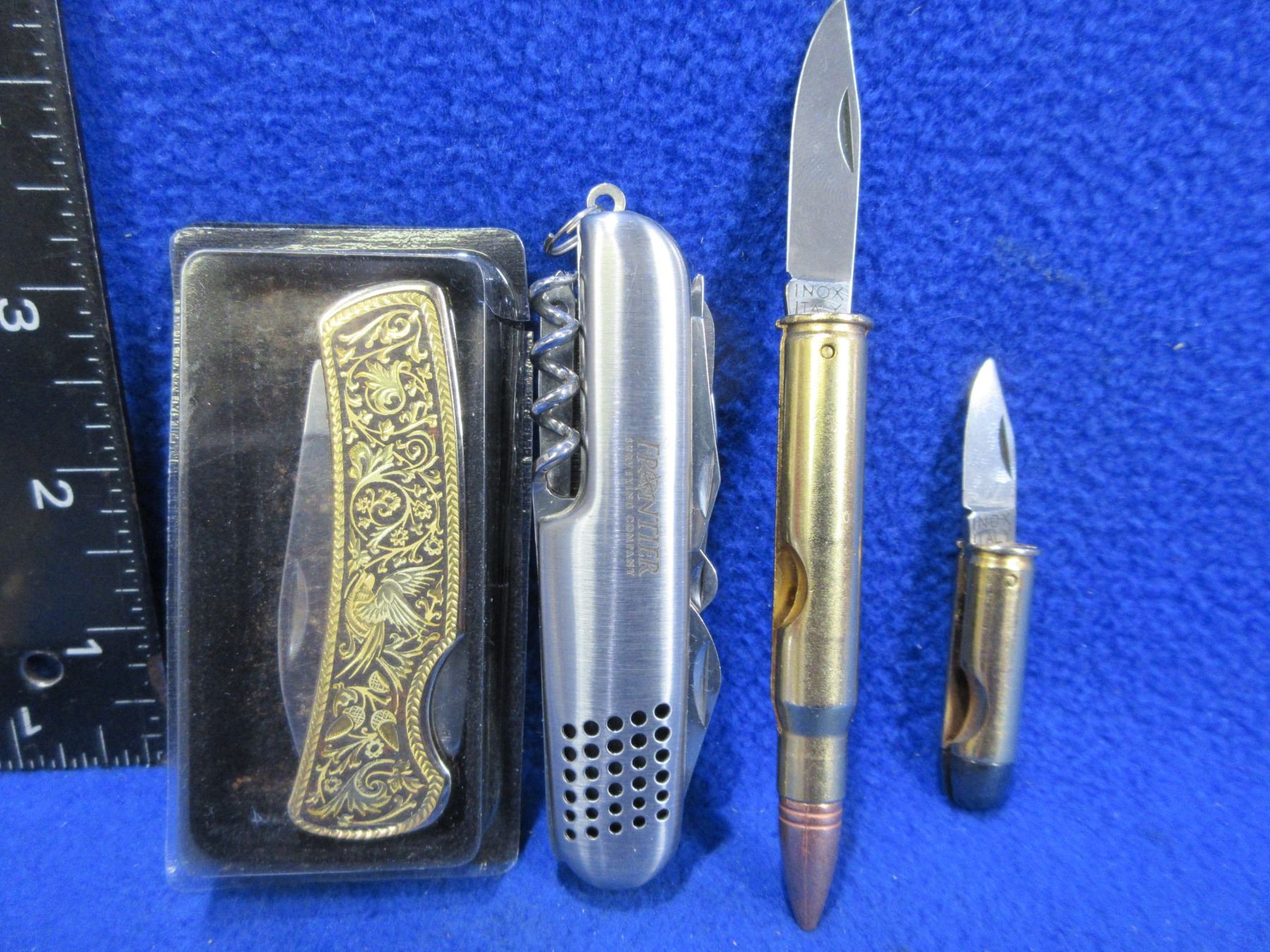 2 Bullet Knives, Folding Lock Blade Knife & Swiss Style Knife