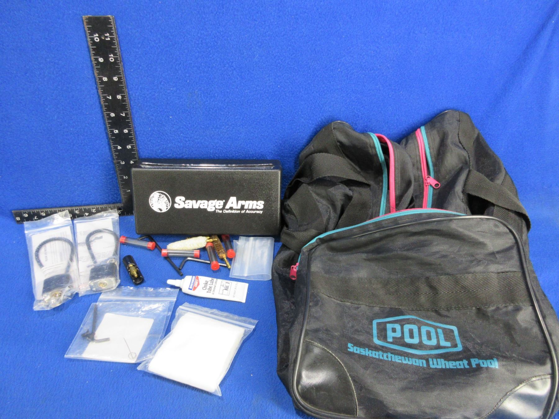 2 Cable Locks with 2 Keys Each, Saskatchewan Wheat Pool Bag, Savage Cleaning Kit (As Is)