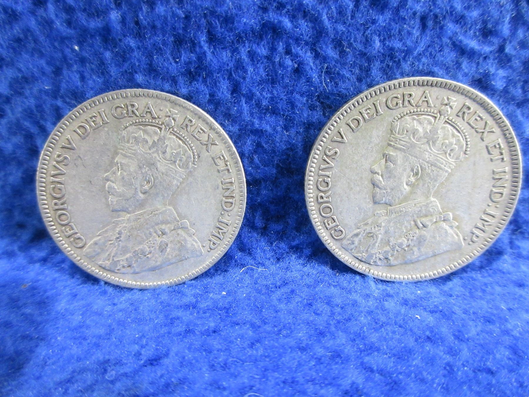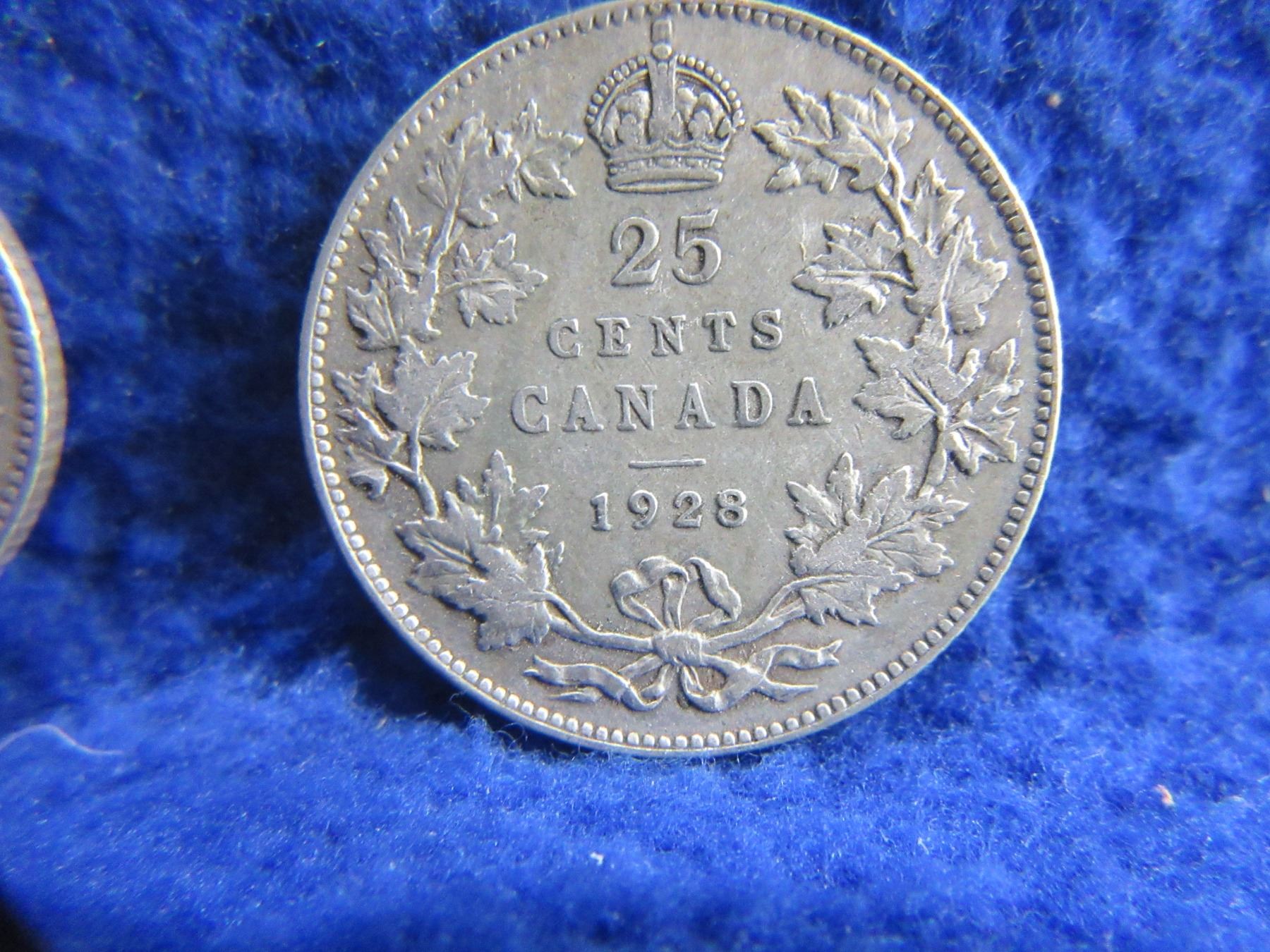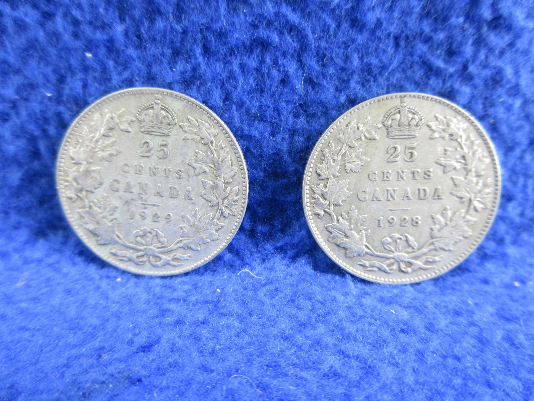2 Canadian 25 Cent Coins - .800 Silver - 1928, 1929