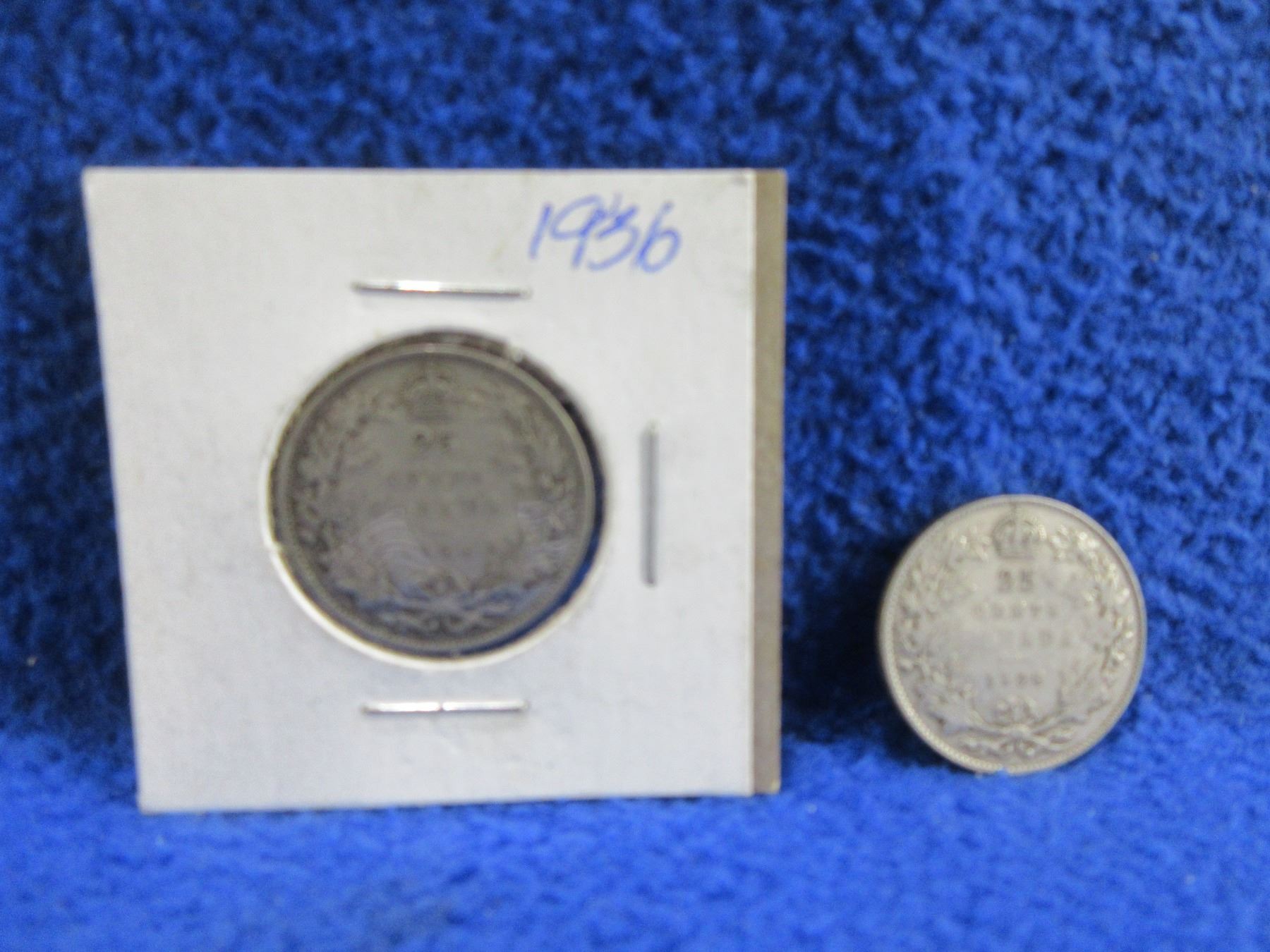 2 Canadian 25 Cent Coins - .800 Silver - 1928, 1936