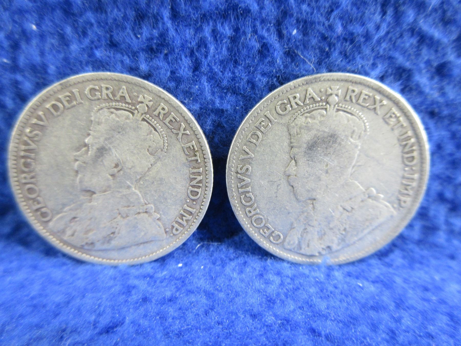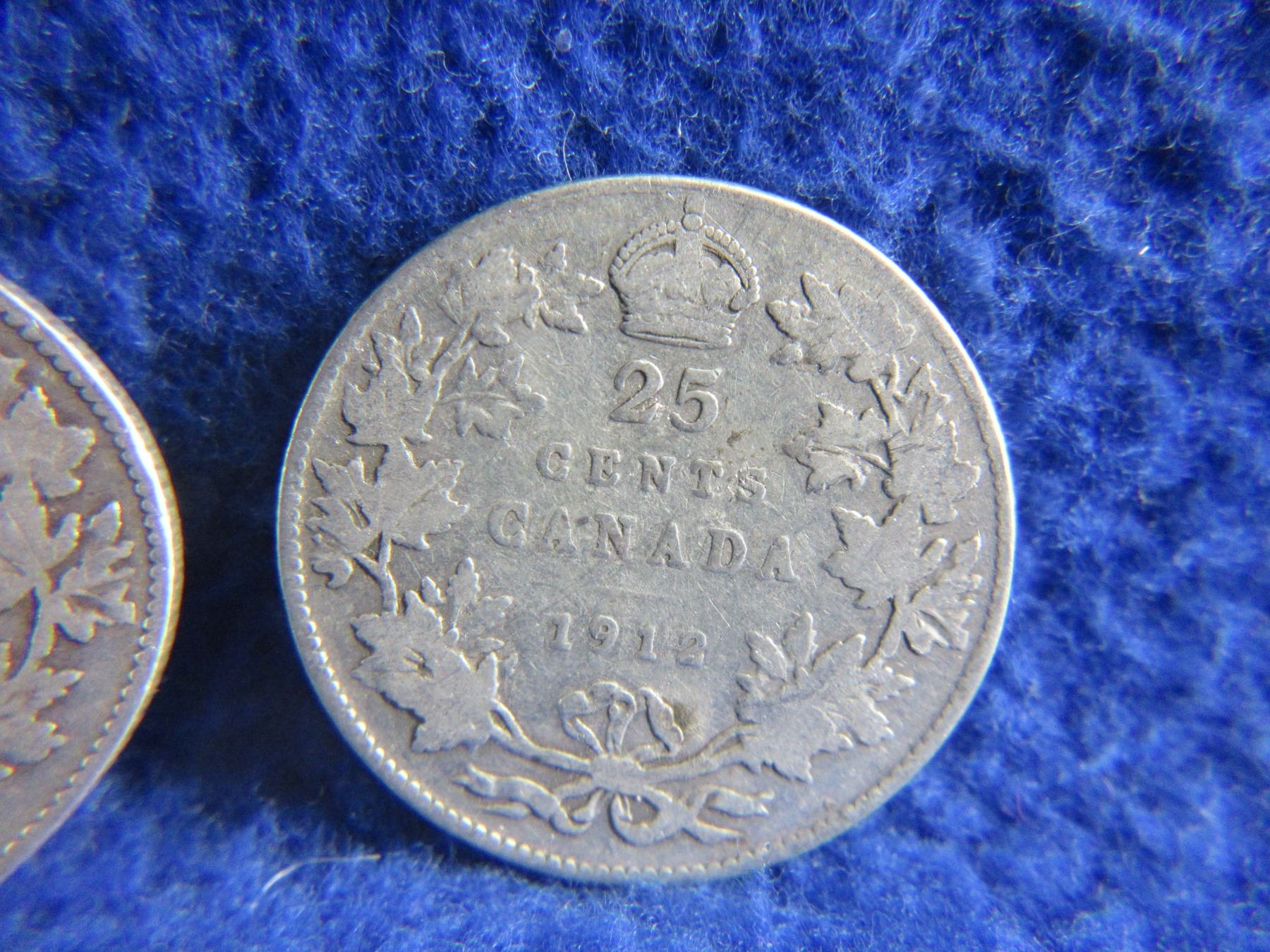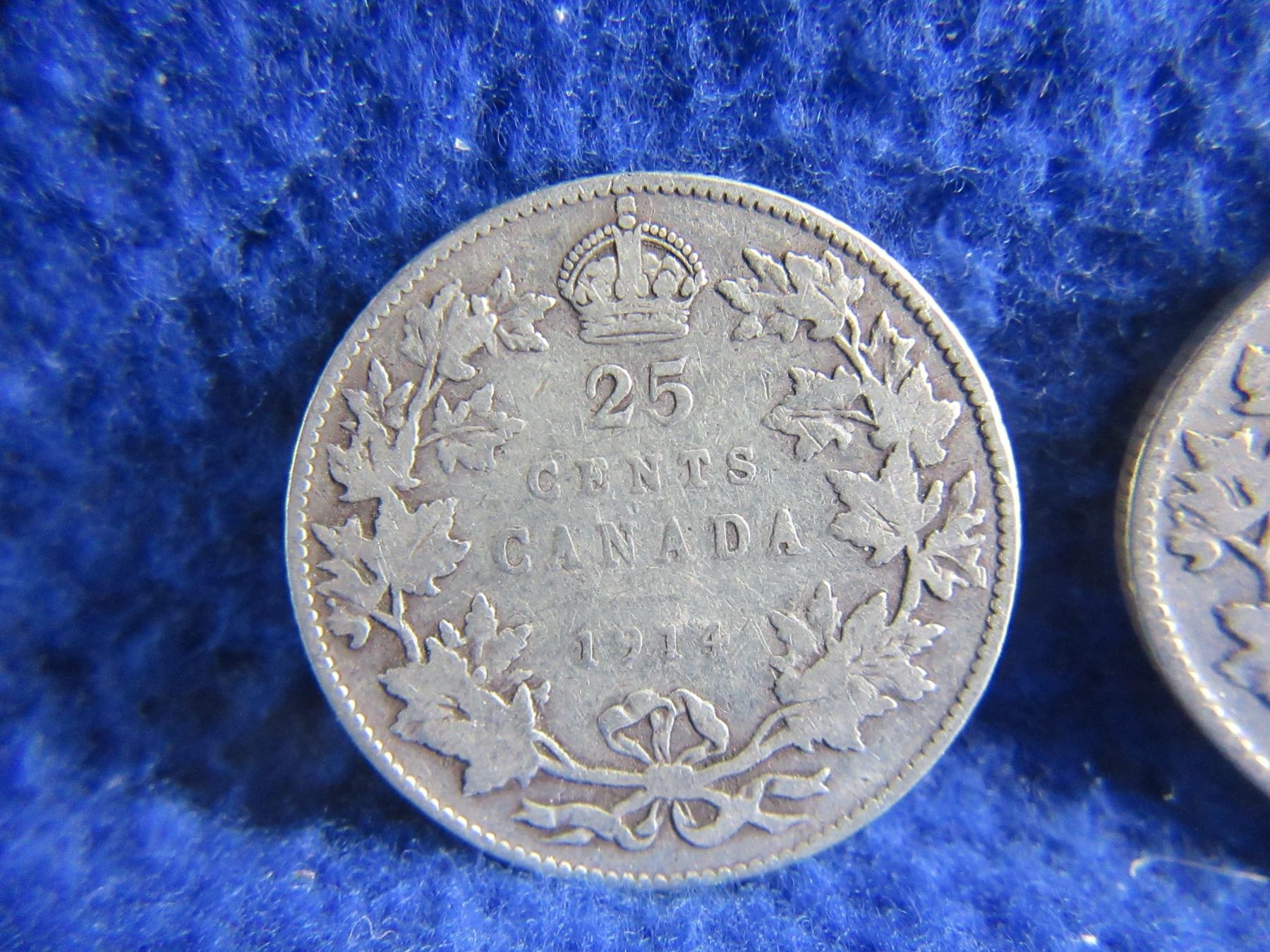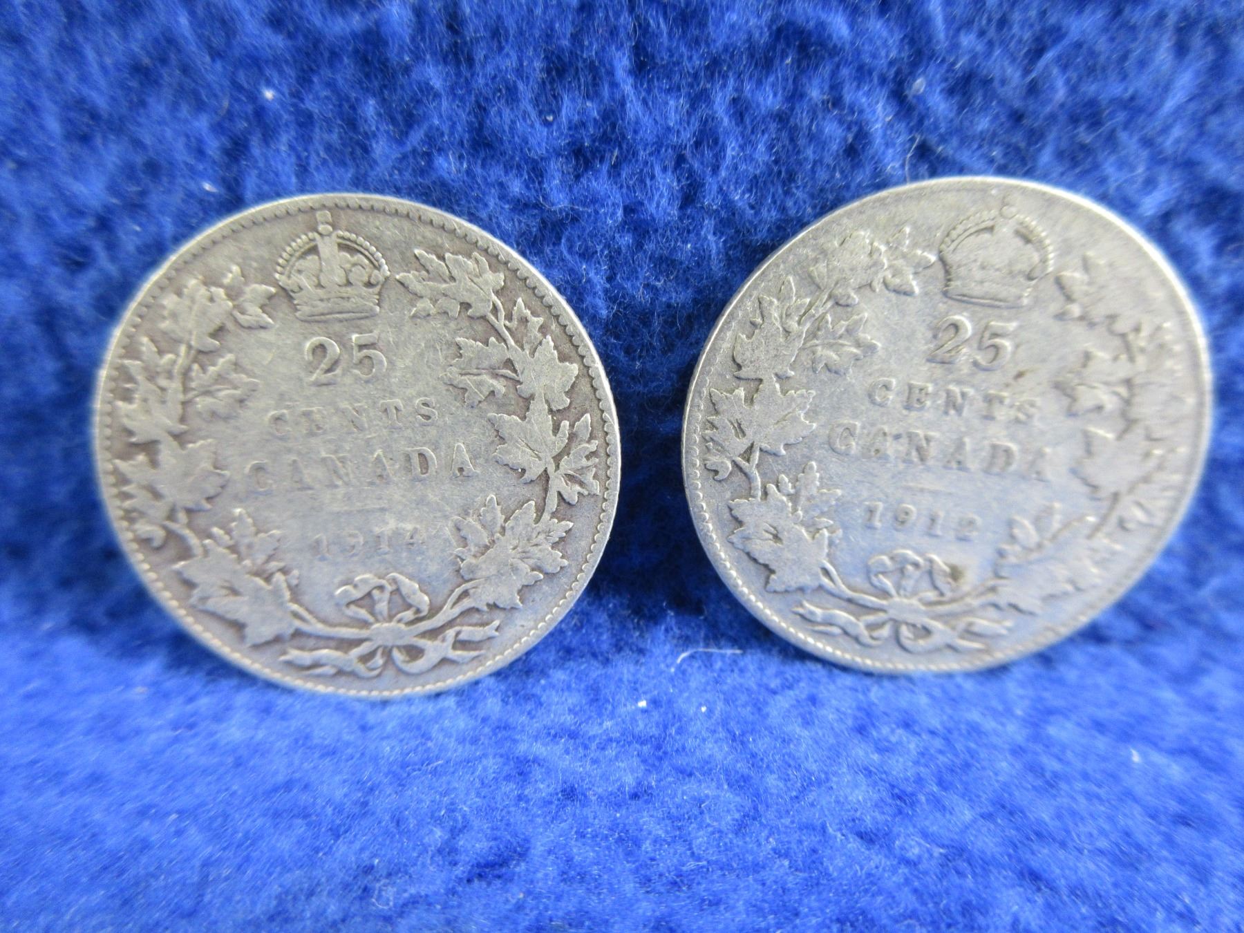 2 Canadian 25 Cent Coins - .925 Silver - 1912, 1914