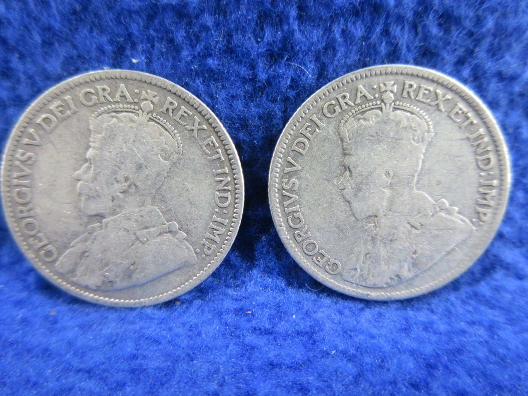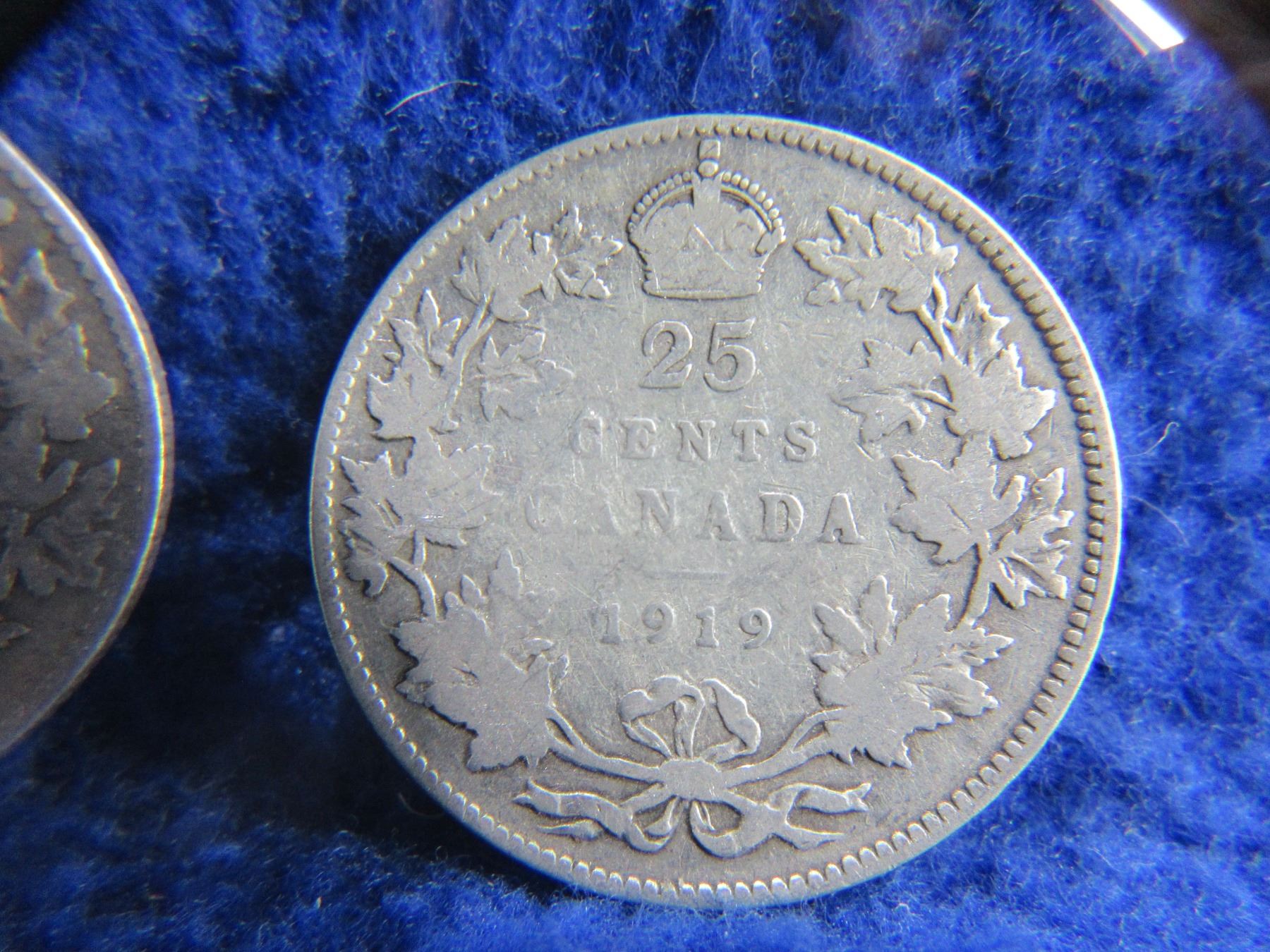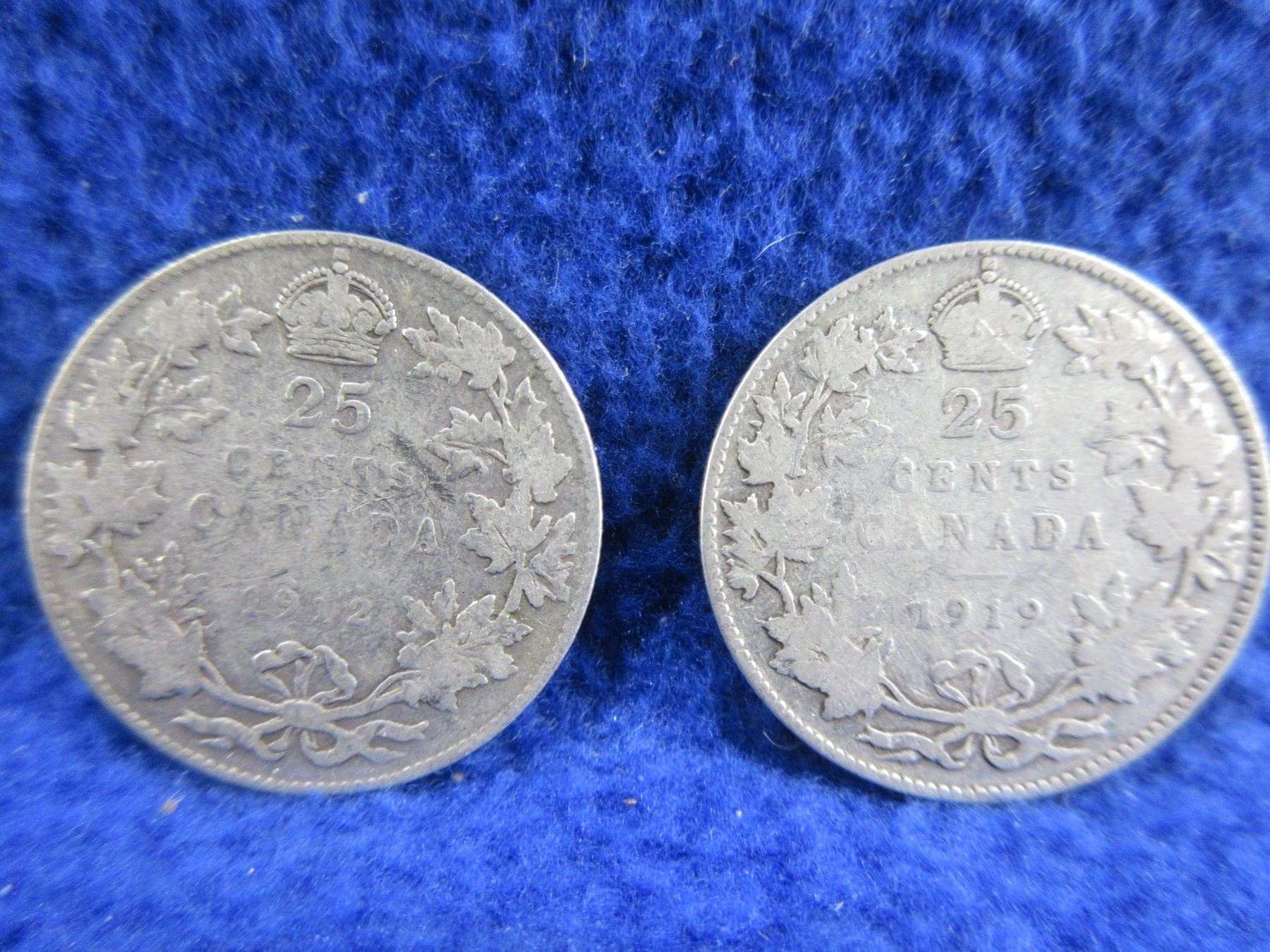 2 Canadian 25 Cent Coins - .925 Silver - 1912, 1919