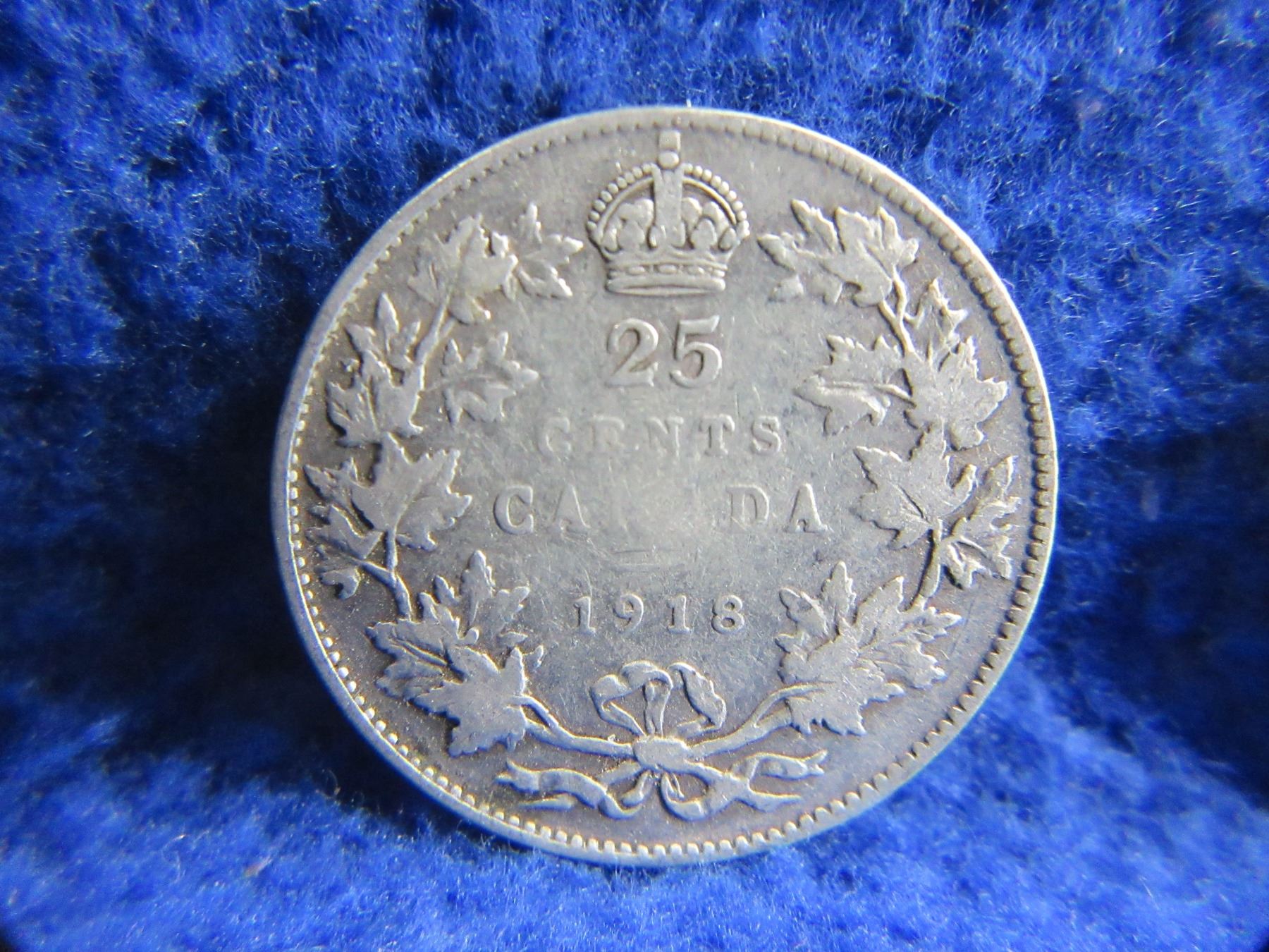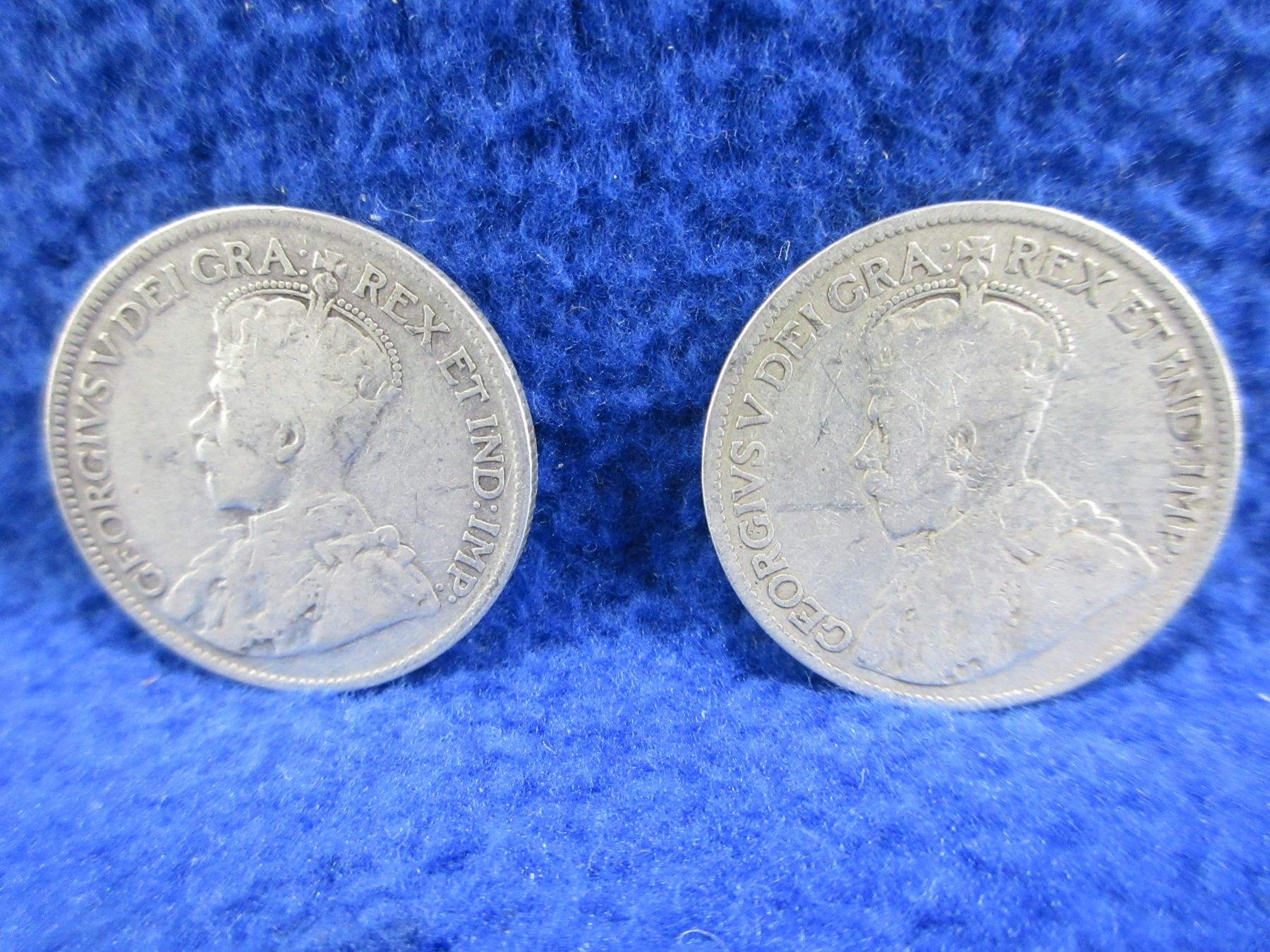 2 Canadian 25 Cent Coins - .925 Silver - 1918, 1919