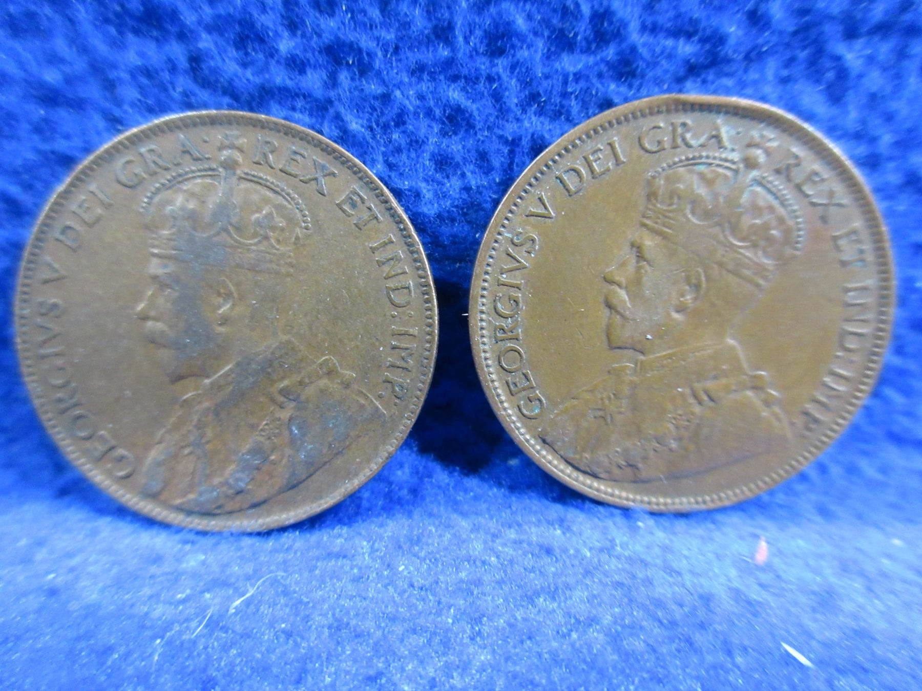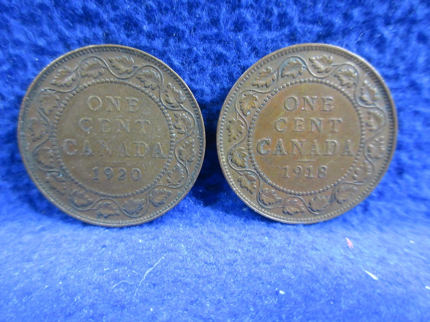 2 Canadian One Cent Coins - 1918 and 1920 - George V
