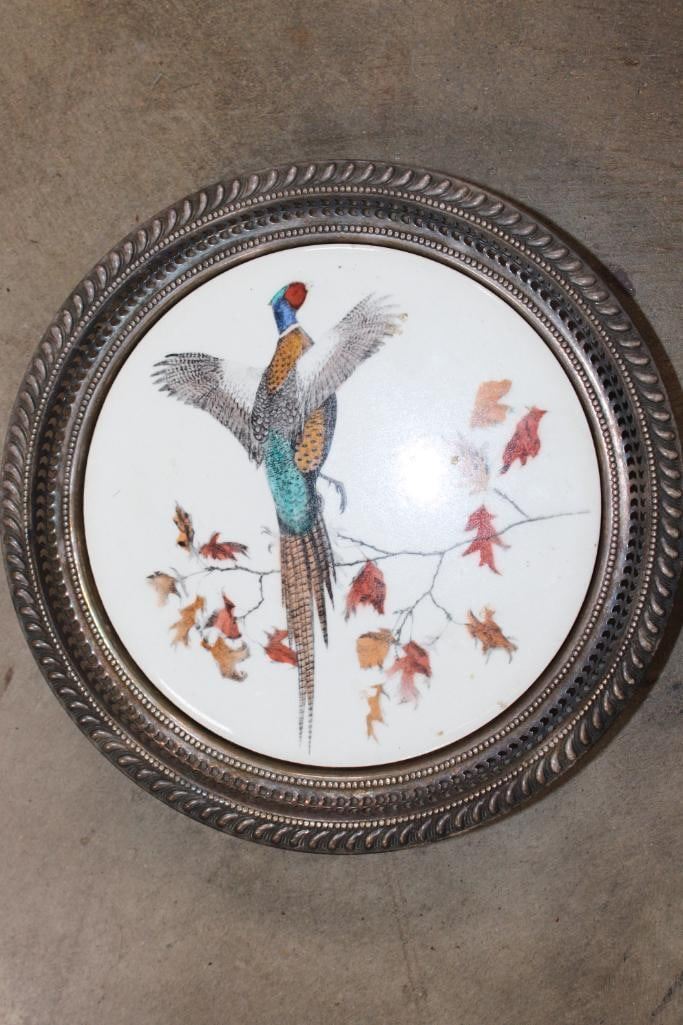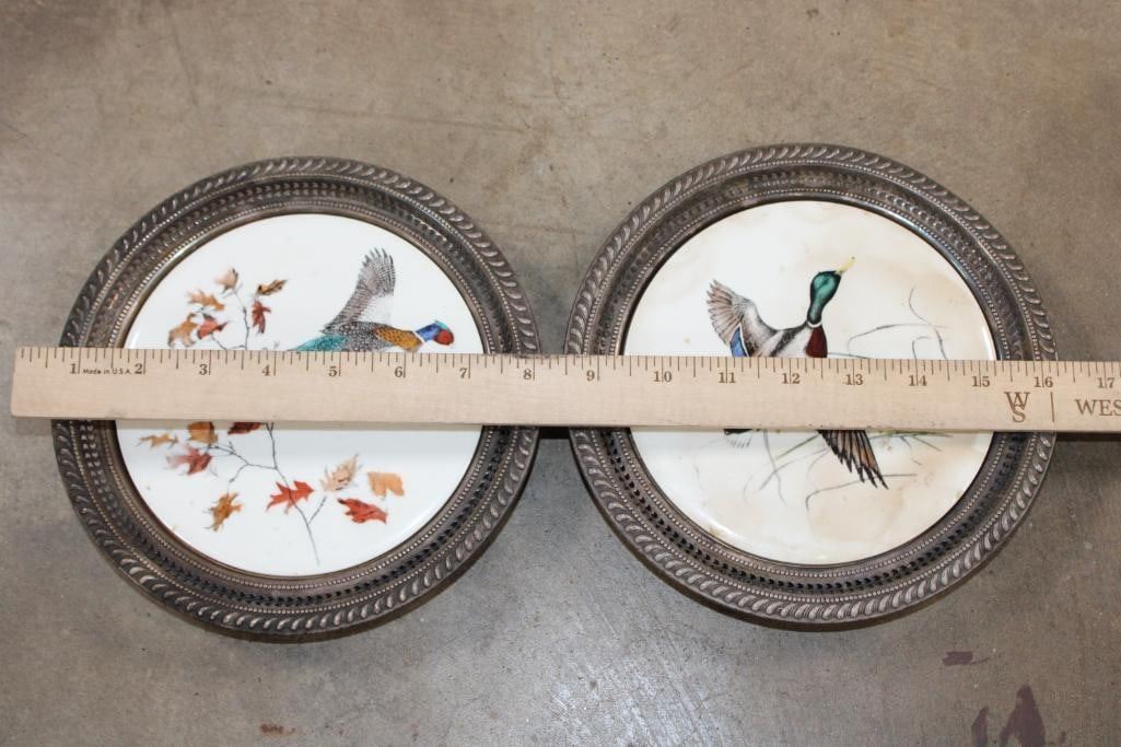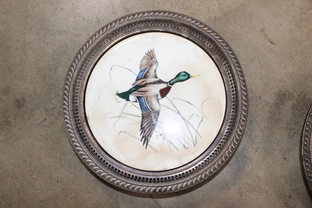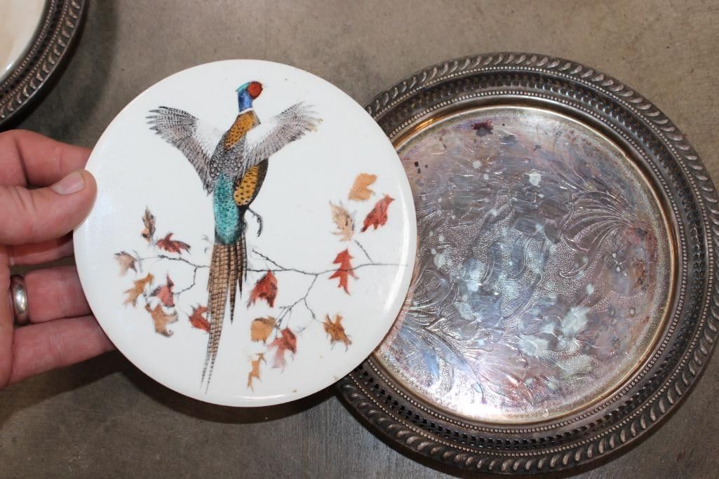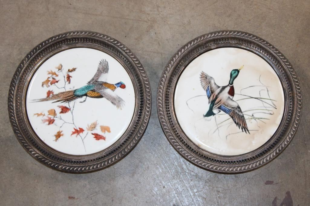 2 Delano Studios Silverplated and Porcelain Platters or Trays. One Tray has a Pheasant and the other has a Mallard. (ONE$) DECORATIVE AND COLLECTIBLE TRAYS