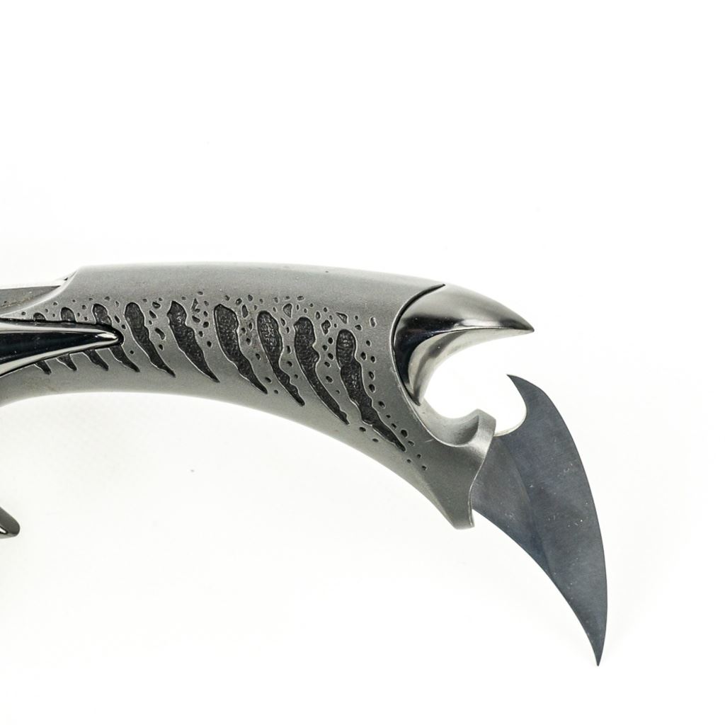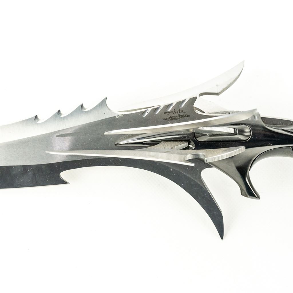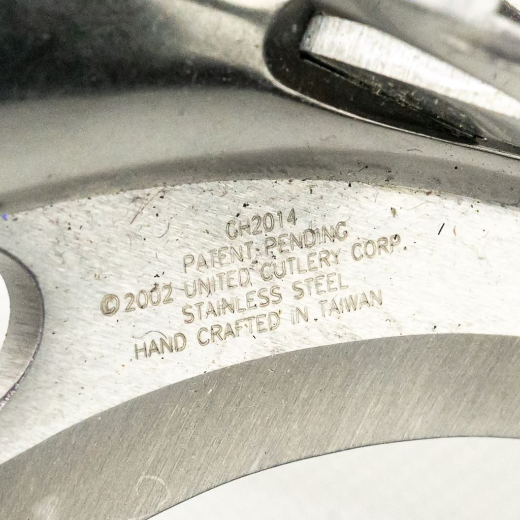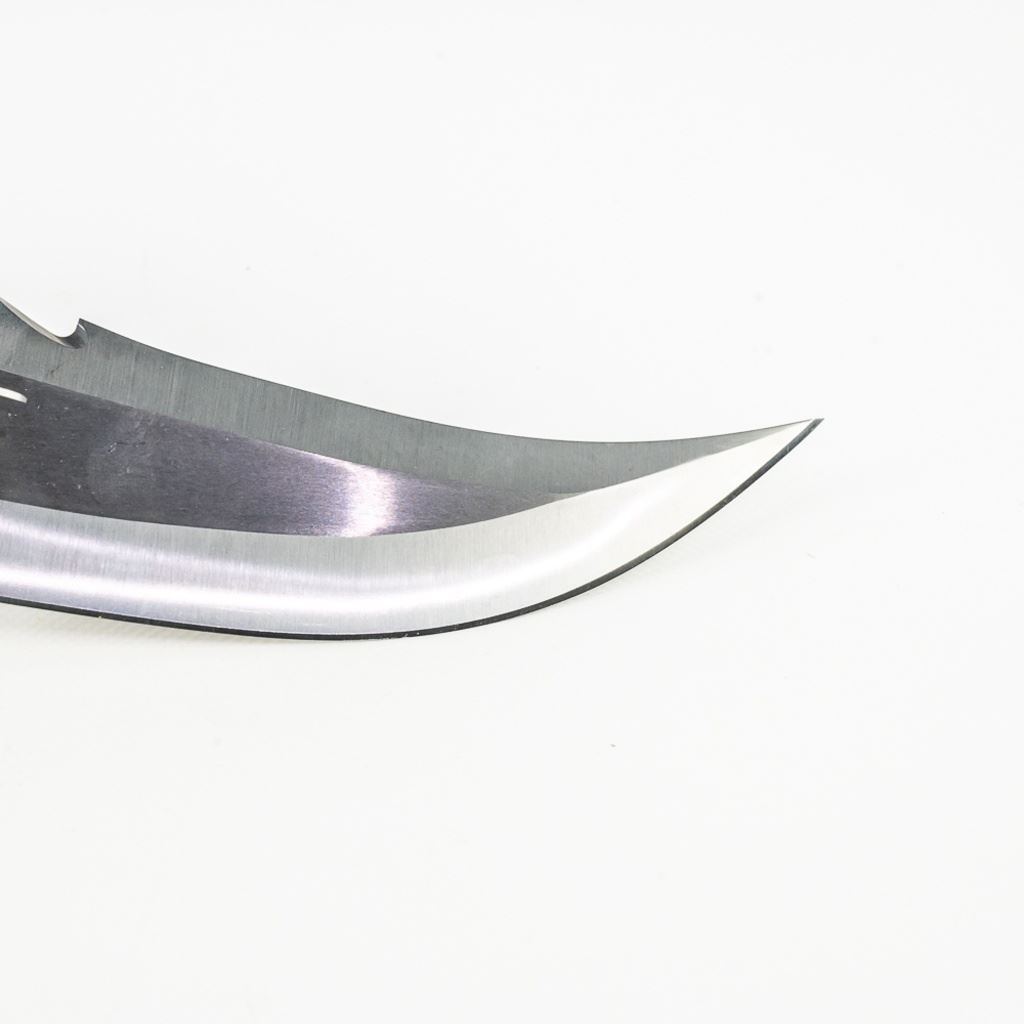 2 imported display daggers. 1 has double edge blade with skull and bones handle. Other knife has very sharp curved blade and multi-bladed handle. see photos.