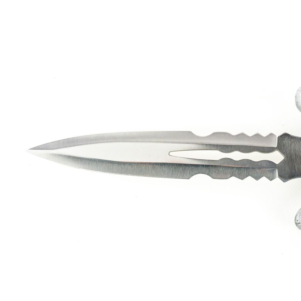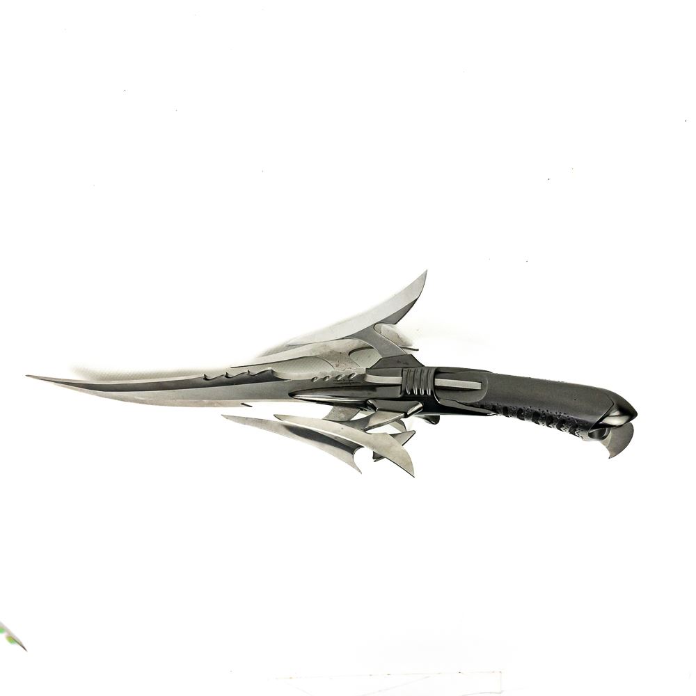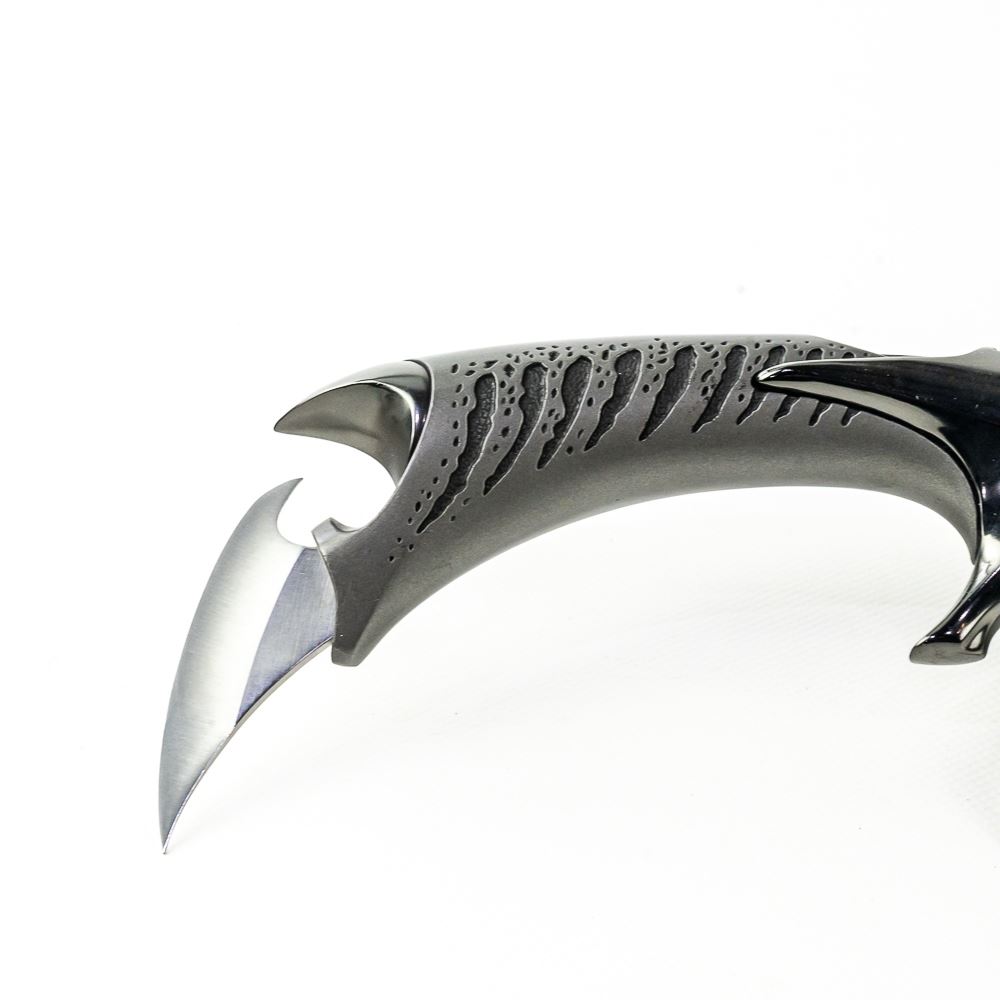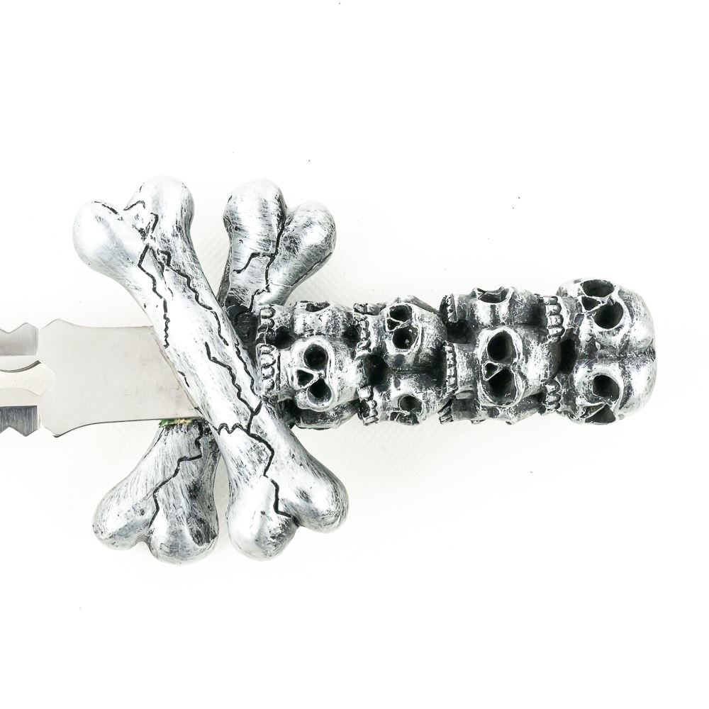 2 imported display daggers. 1 has double edge blade with skull and bones handle. Other knife has very sharp curved blade and multi-bladed handle. see photos.