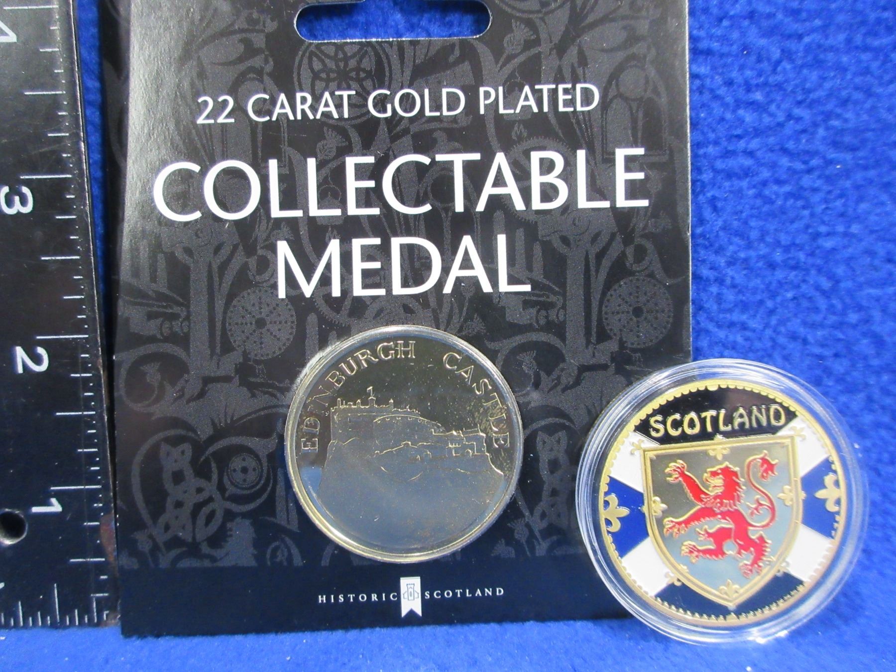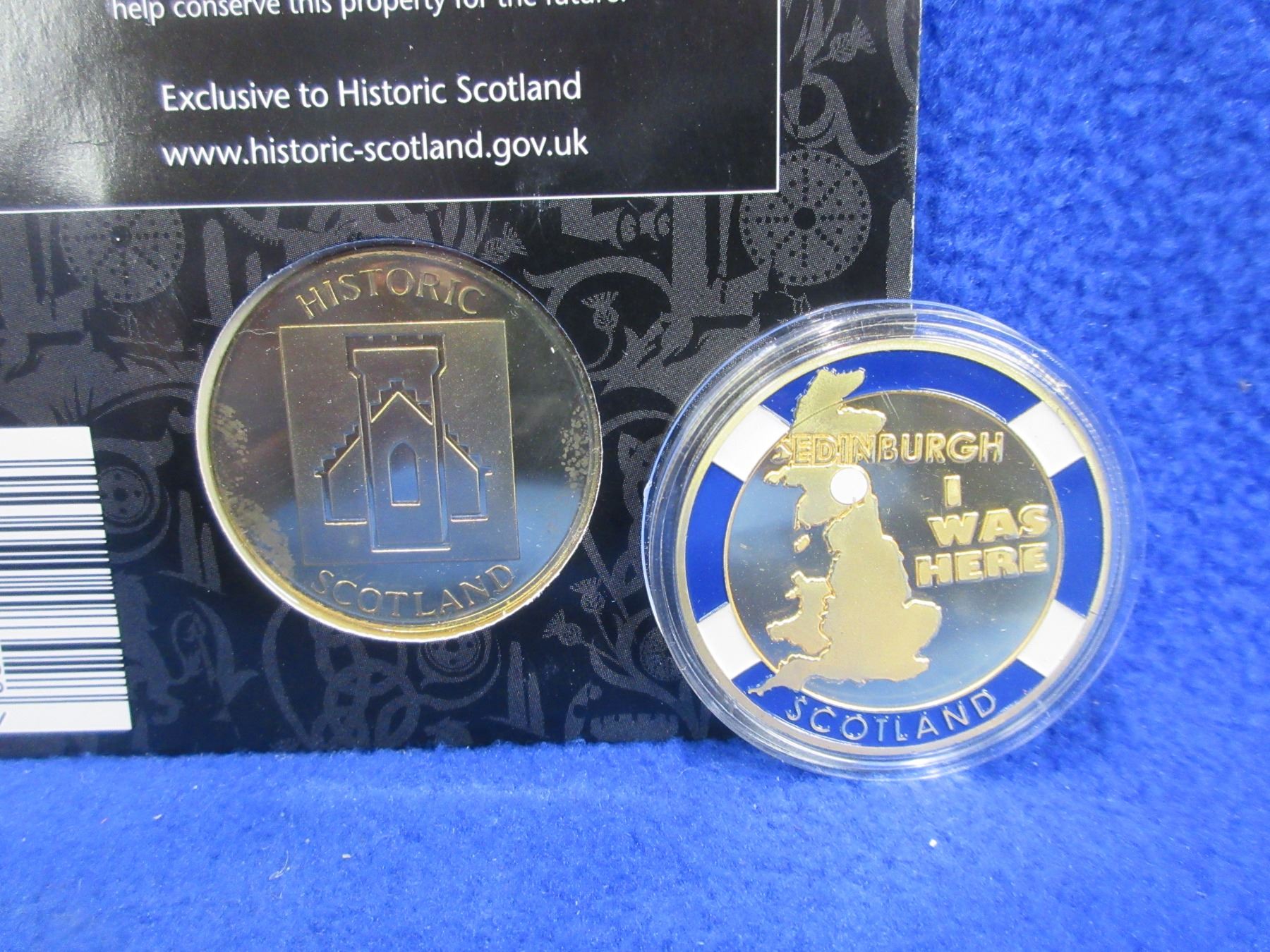 2 Edinburgh, Scotland Souvenir Coins - Edinburgh Castle "I Was Here" & Edinburgh Castle 22 Carat Gold Plated