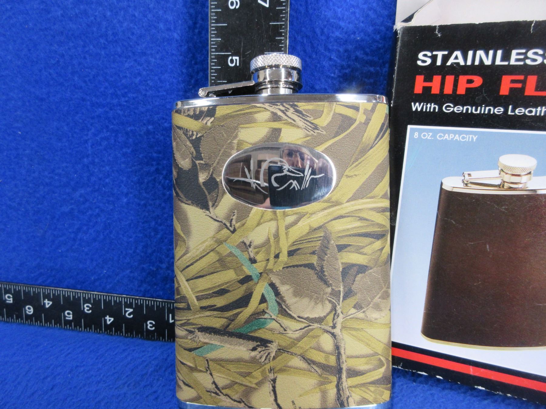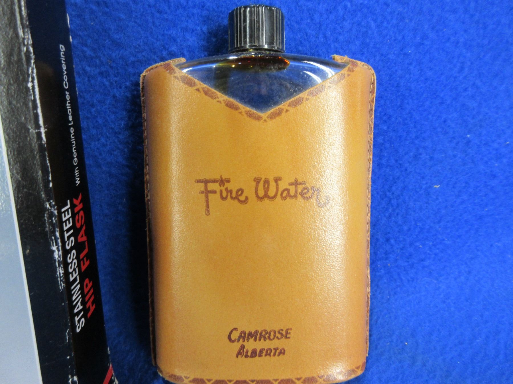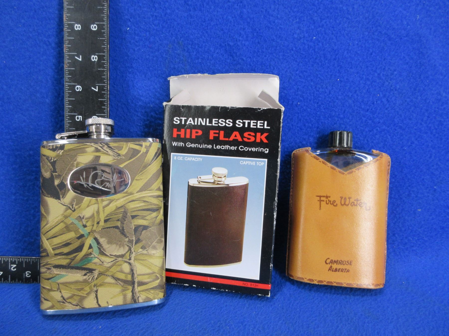 2 Flasks - 8oz Stainless Steel (Ducks Unlimited) and Fire Water (Glass with Leather Sheath)