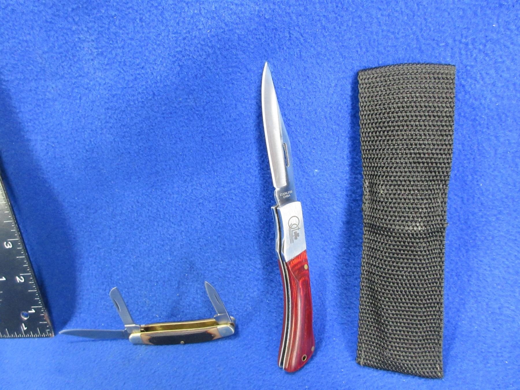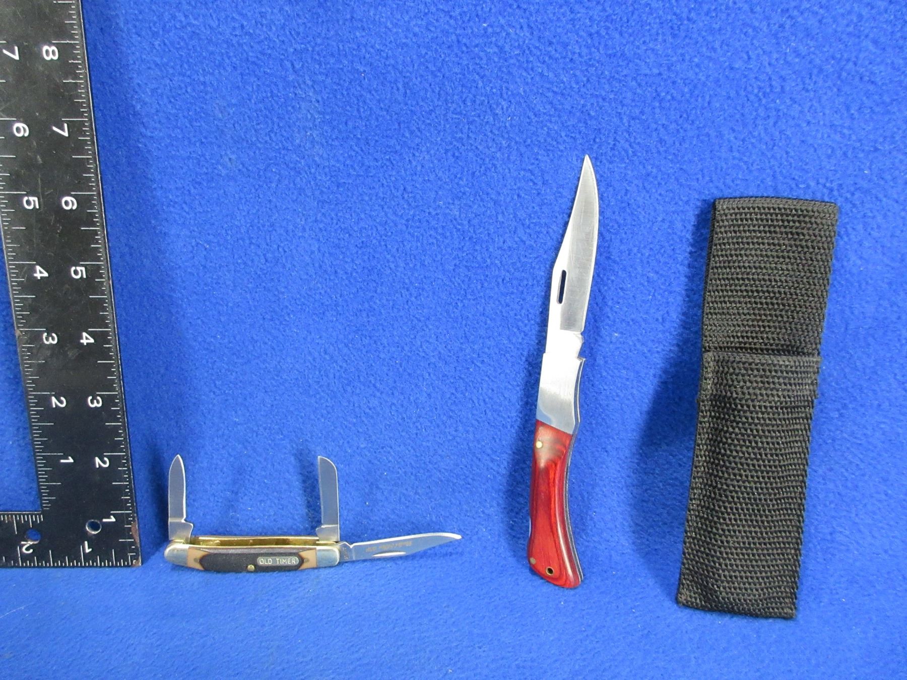 2 Folding Blade Knives - Old Timer 3 Blade Pocket and Stainless China Single Blade Locking with Sheath