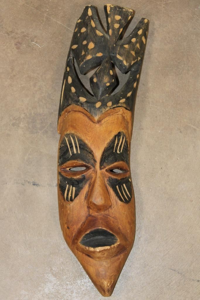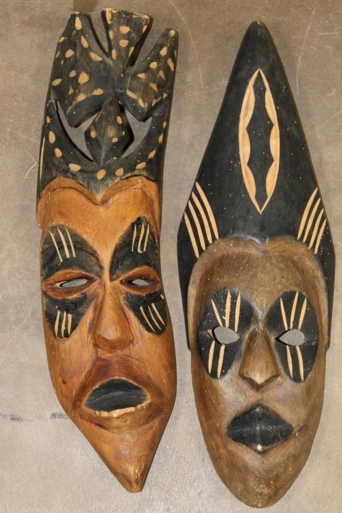2 Hand-carved and Hand-painted AFRICAN Tribal Masks. There is a Male and a Female Mask. The Male measures 16" Long x 4.5" Wide and the Female measures 16.25" Long x 5.5" Wide. (ONE$) COLLECTIBLE AFRICAN MASKS