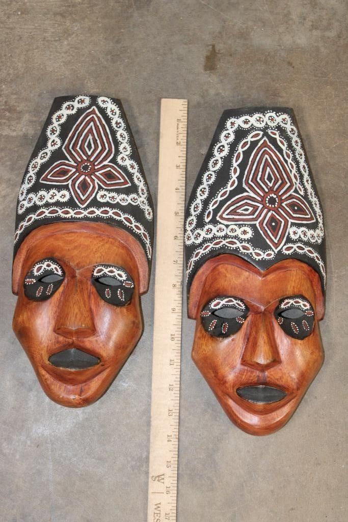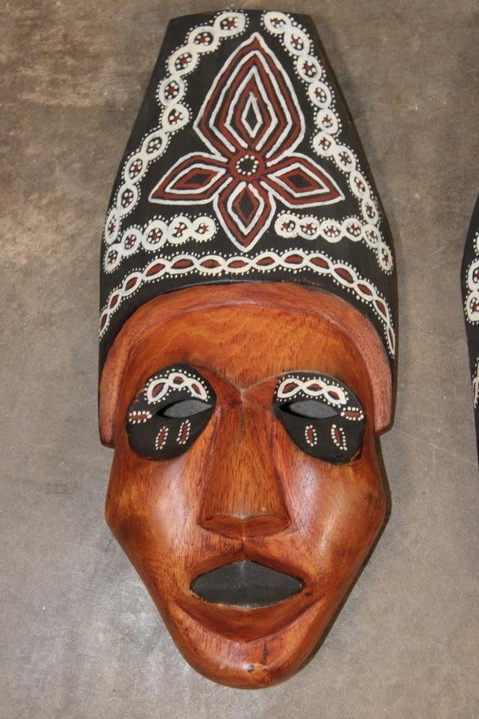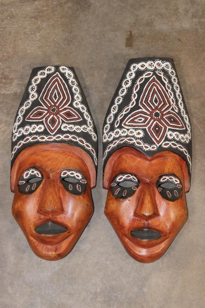 2 Hand-carved and Hand-painted Indonesian Tribal MASKS. They measure 12.5" Tall x 6" Wide (each). (ONE$) COLLECTIBLE ASIAN ARTIFACTS