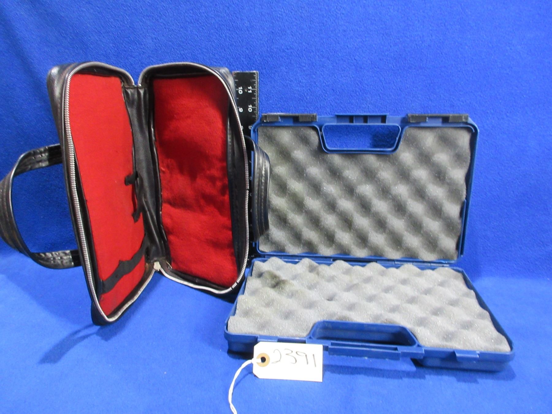 2 Handgun Cases - Doskocil Hard Case (12" x 8") and a Leather Soft Case (12" x 7")