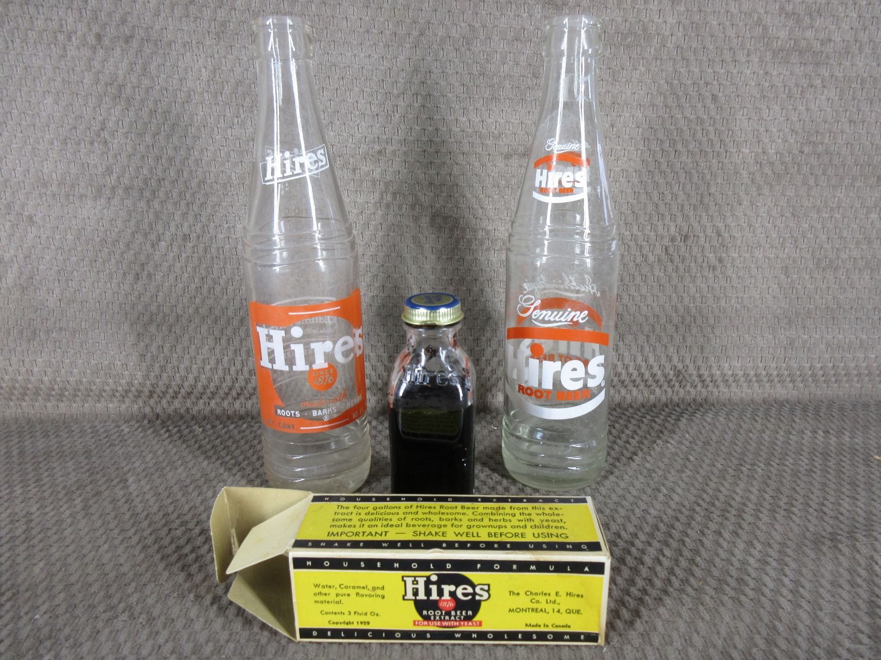 2 - Hires Root Beer Bottles & Hires Extract Bottle & Box - extract dried out