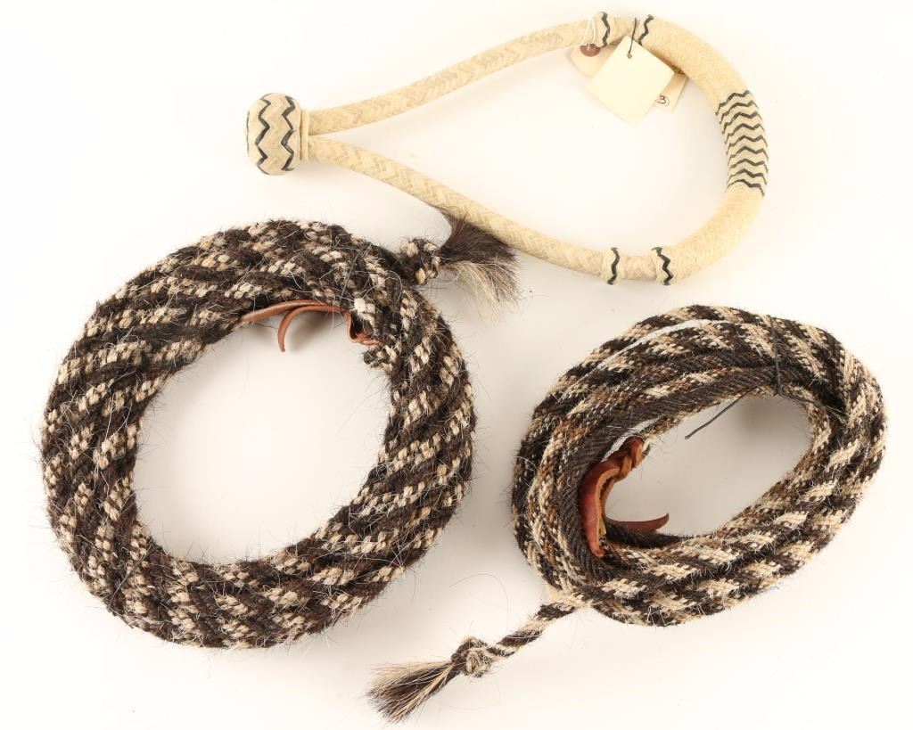 Rawhide bozel with black geometric design 5/8, custom made by Steve Guitron.