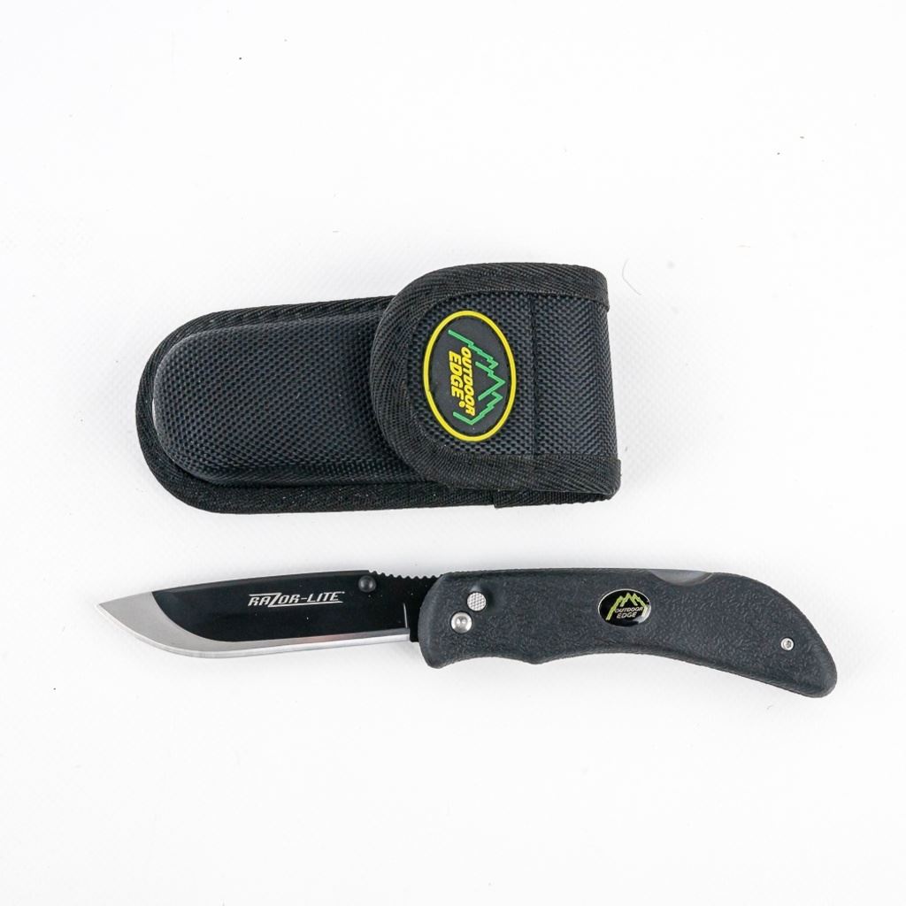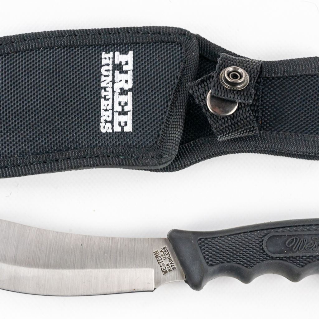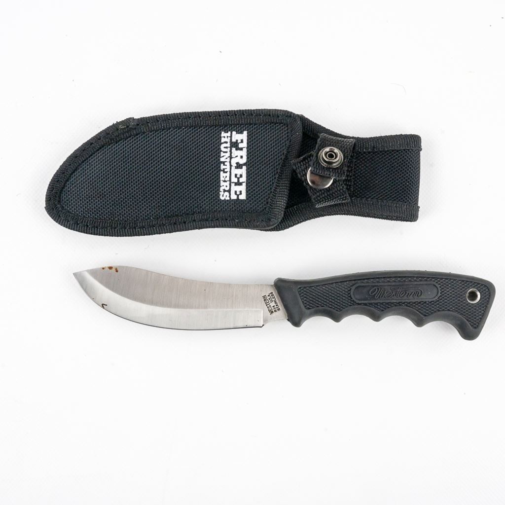 1 Western Cutlery USA skinning knife like new in nylon sheath, 1 Outdoor Edge Razor-Lite folding EDC/hunting knife that is brand new in nylon belt case with extra blades. These are all you need to field dress your next deer. See photos.