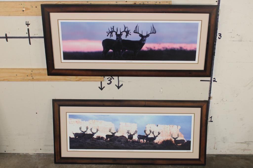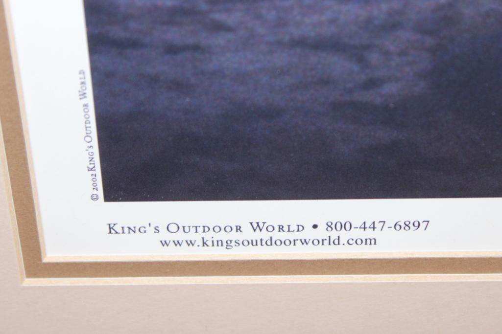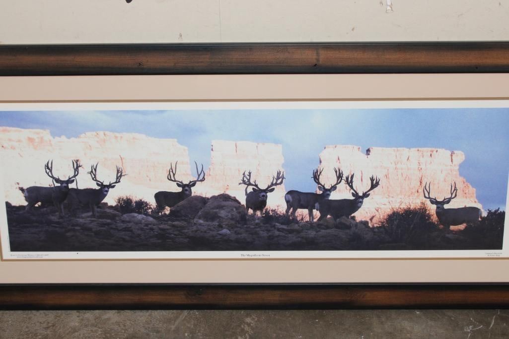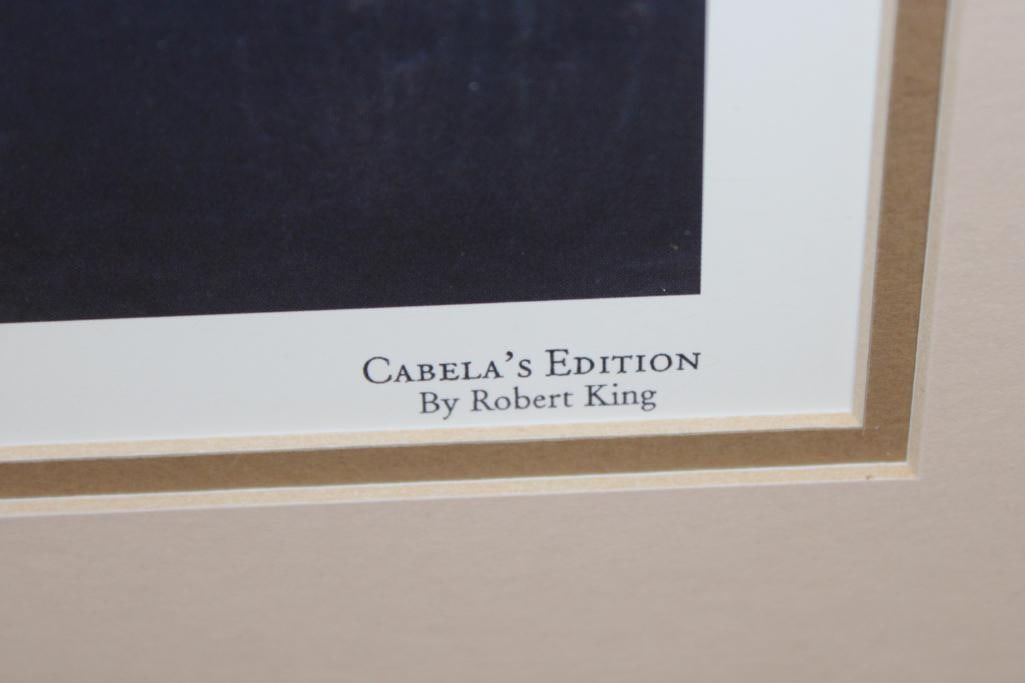 2 Large Cabela's Edition Art Photo Prints by Robert King for King's Outdoor World 2002. "Beauty and the Beast" and "The Magnificient Seven" in matching 43" Wide x 19" Tall Wood and Glass Frames. (ONE$) COLLECTIBLE WILDLIFE ART