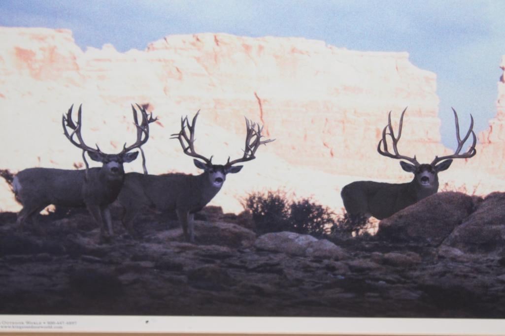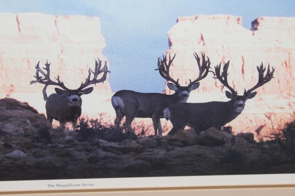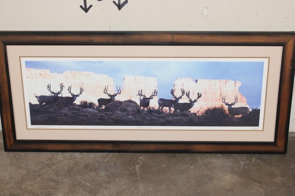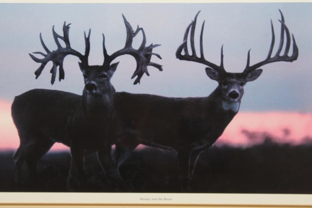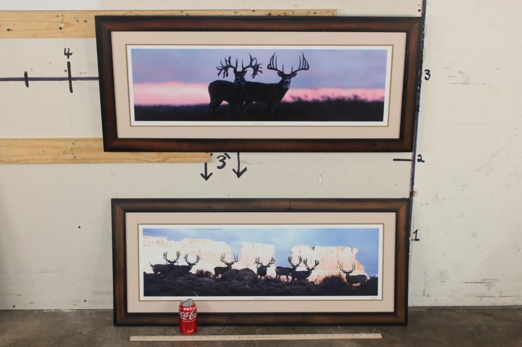 2 Large Cabela's Edition Art Photo Prints by Robert King for King's Outdoor World 2002. "Beauty and the Beast" and "The Magnificient Seven" in matching 43" Wide x 19" Tall Wood and Glass Frames. (ONE$) COLLECTIBLE WILDLIFE ART