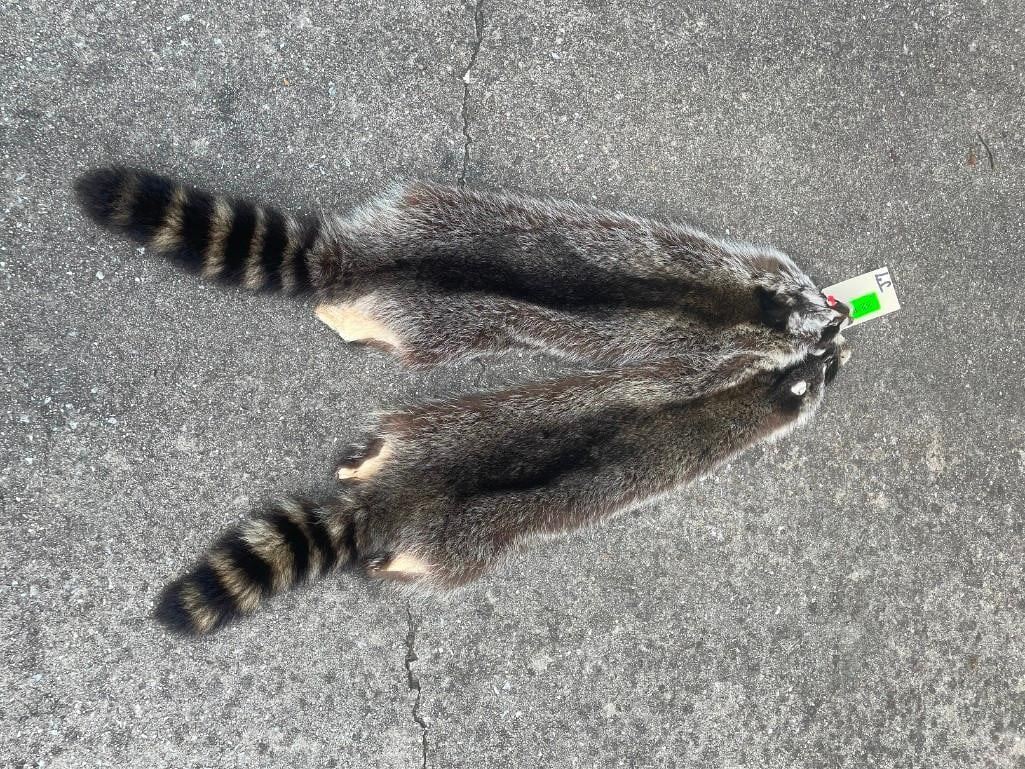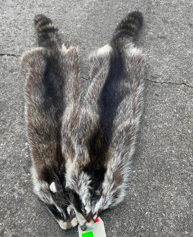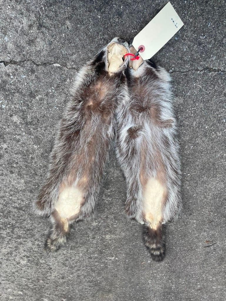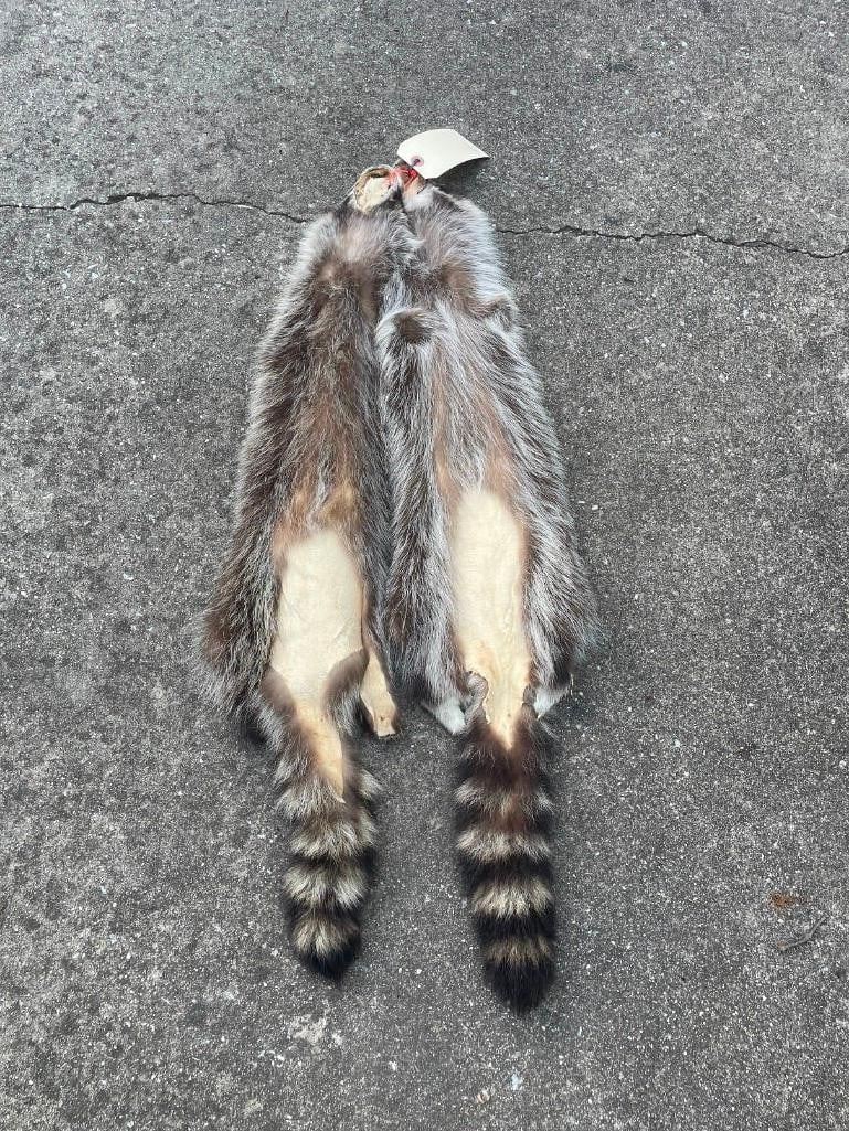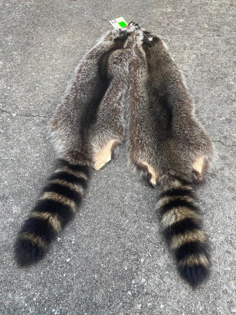 2 *New* Large Soft and Tanned RACCOON FURS or Hides. They measure 35" Long each. Great taxidermy decor for any rustic interior space! (ONE$) TAXIDERMY