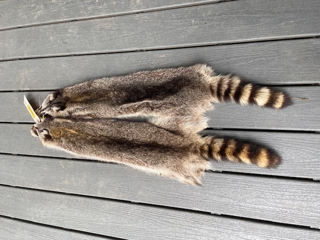 2 *New* XXL Tanned RACCOON Hide or Fur Skins. They measure 40" Long each. (ONE$) TAXIDERMY DECOR