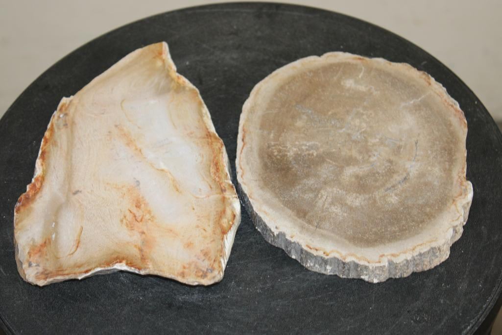 2 Polished PETRIFIED FOSSILIZED WOOD Slab Slices from Indonesia. They measure 7" Long x 5" Wide x 1/2" Thick and 6.5" Long x 5.5" Wide x 1/2" Thick. Total Weight 2 lbs 13 oz. These petrified and fossilized wood slices are a 3 dimensional representation of organic material from the Triassic Forest. (ONE$) ROCKS FOSSILS MINERALS