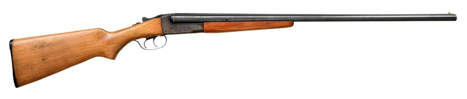 1) Cal. 12 GA 2 3/4". NSN. Bbl.28" solid rib w/ improved modified & modified chokes. Silver bead front sight. Blued bbls. Case colored frame. Dbl. triggers & automatic safety. Checkered pistol grip stock & varnish finished forend. CONDITION: stock shows a crack behind action at both sides, scattered handling wear & flaking varnish on forend. Frame shows oxidation overall w/ fading gray. Bbls.. retain 50% original blue w/ overall fading to brown, oxidation & edge wear. Good bores. (23-1902/MJC). 2) Cal. 20 Ga 3". NSN. Bbl. 28" solid rib w/ improved modified & improved cyl. chokes. Replacement orange bead front sight. Dbl. triggers & automatic safety. Lever locks up off to right. Case colored frame & blued bbls. Hardwood pistol grip stock & forend. CONDITION: left side of butt stock has a 2 1/2" crack behind action, butt is devoid of varnish but forend retains much varnish w/ handling wear. Stock otherwise shows scattered dings & handling marks. Action retains much of its original case colors w/ scattered oxidation. Bbls. retain 70% original blue w/ scattered fading to brown & light oxidation. Very good bright bores. (23-1996/MJC). ALL CURIO. $400-600.