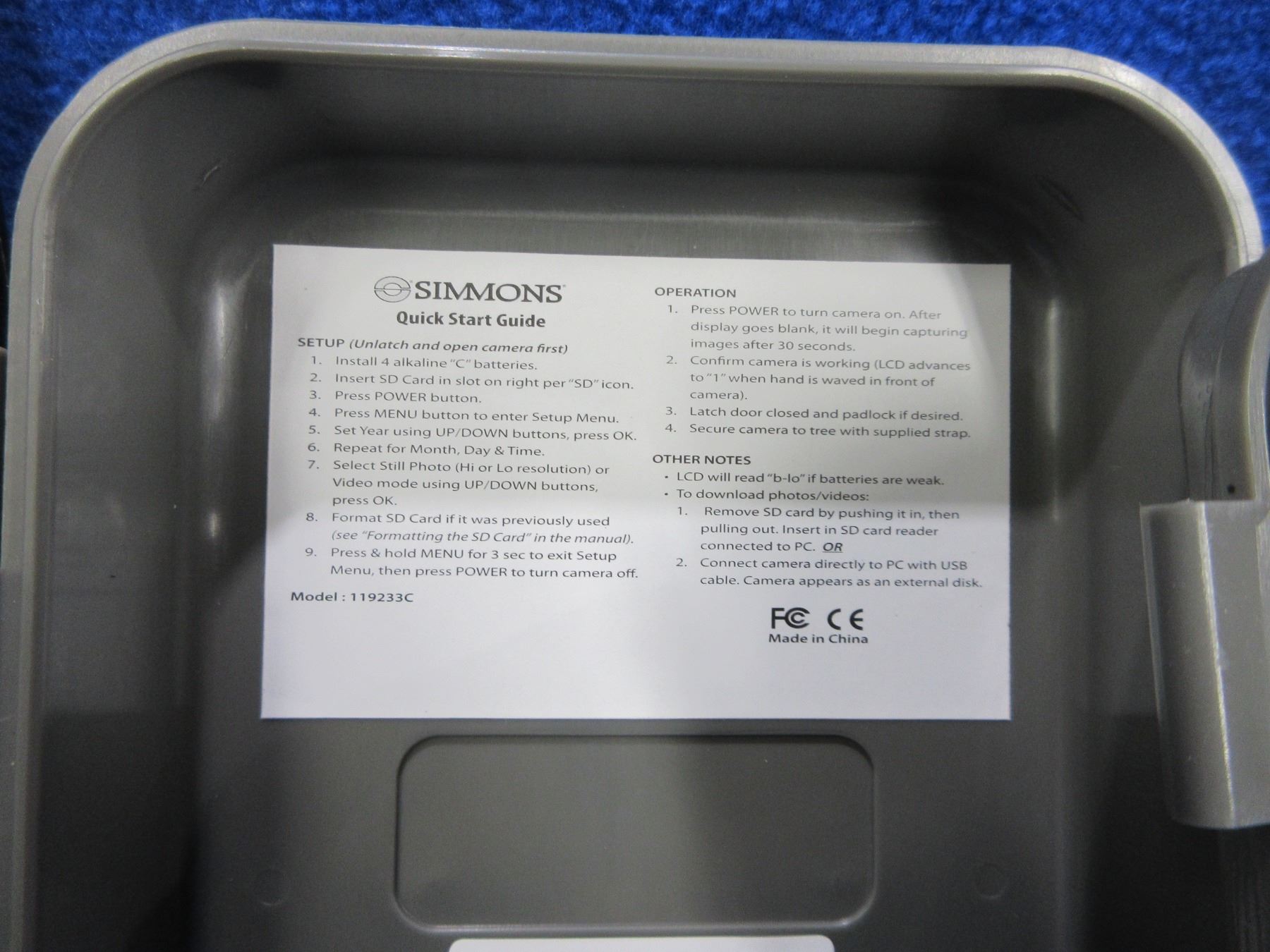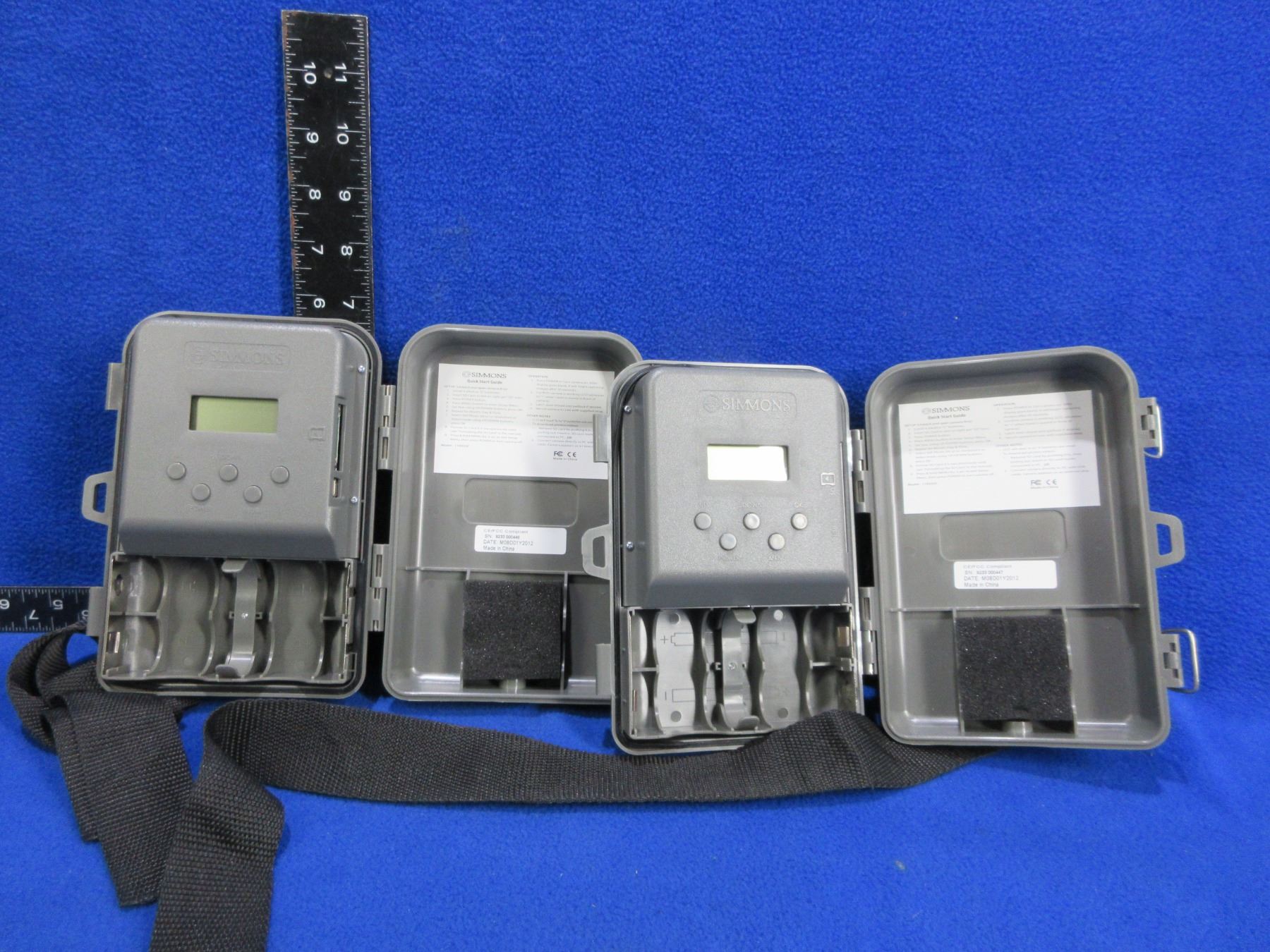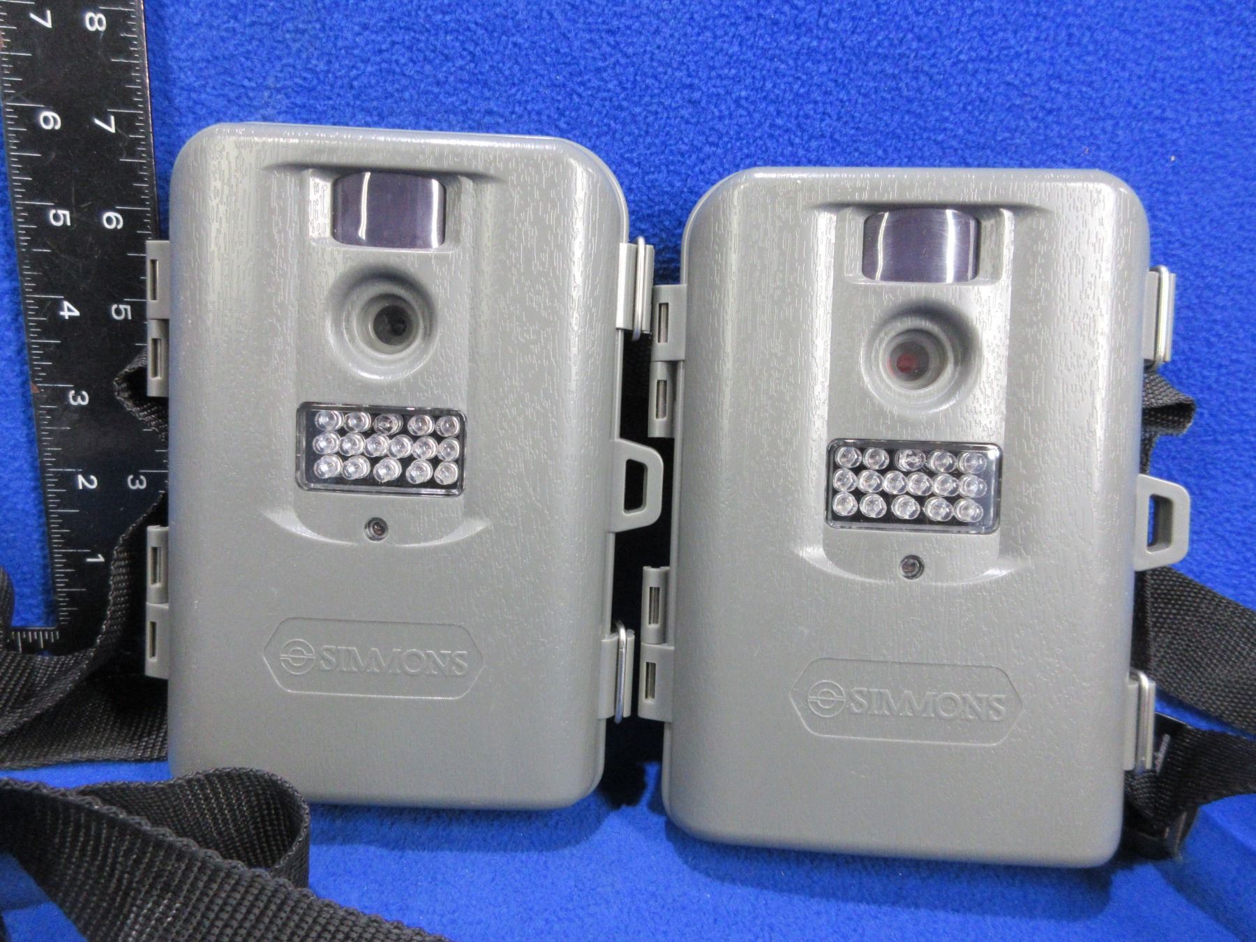 2 Simmons Trail Cameras with Tether Straps Model 199233C - Untested - Need Batteries